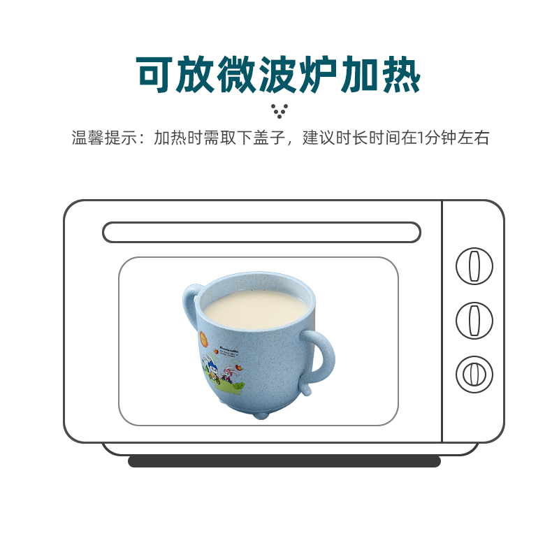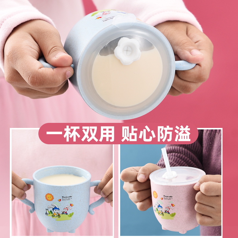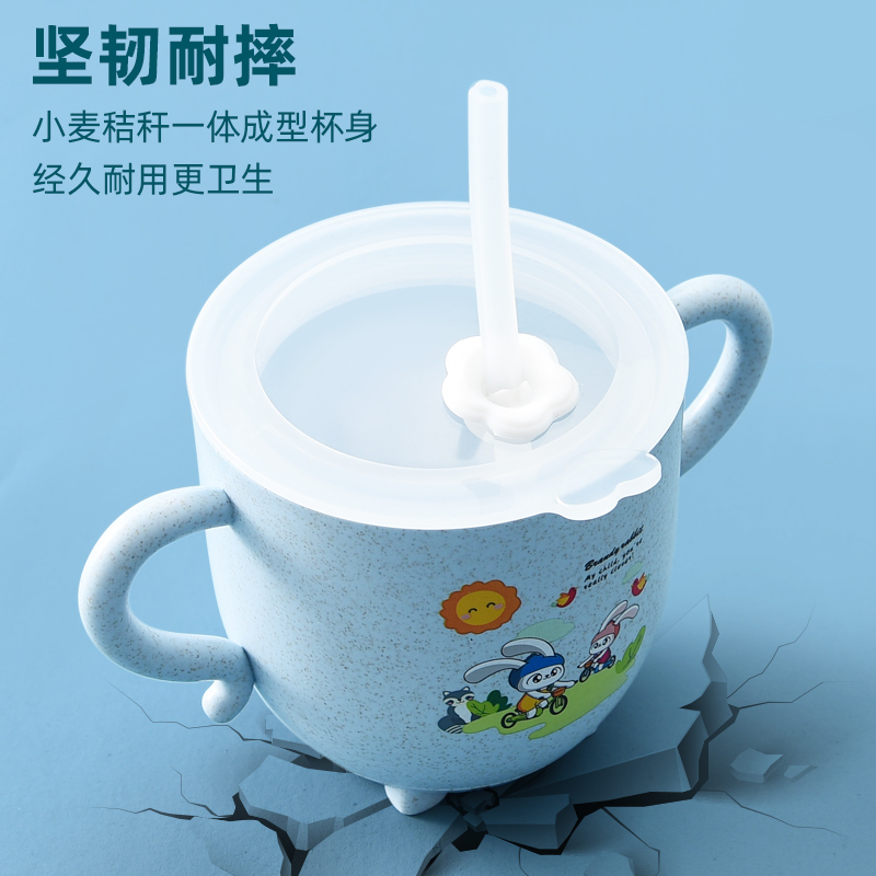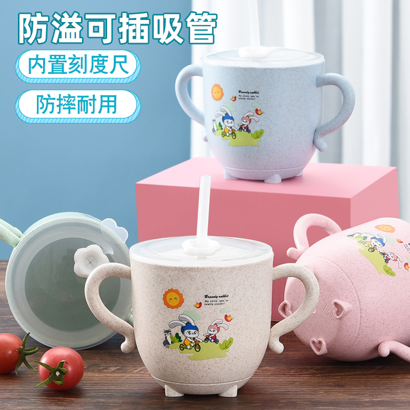 Wheat straw children's drinking cup household anti-fall straw cup cartoon cute baby kindergarten cup with lid