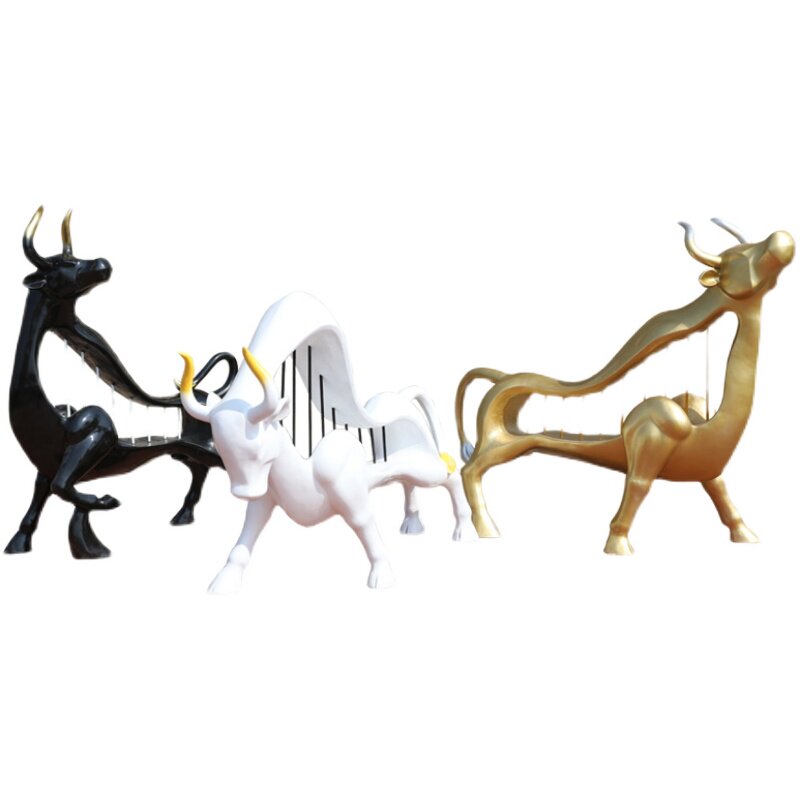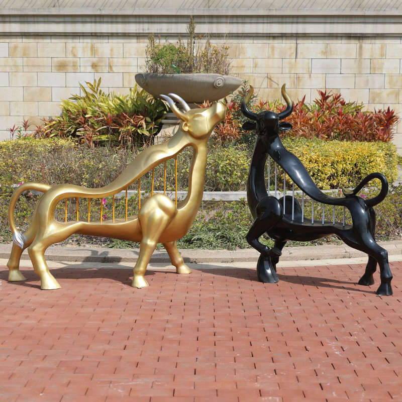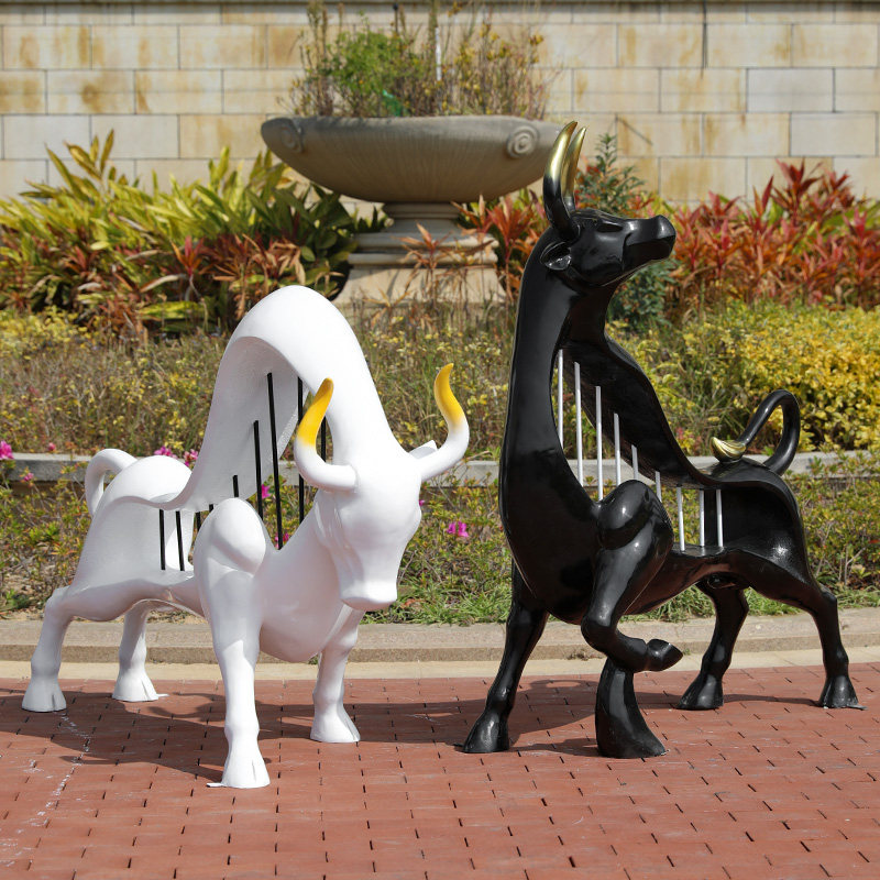 Creative abstract bull ornament outdoor FRP animal sculpture garden landscape courtyard wide shopping mall decorative sketches