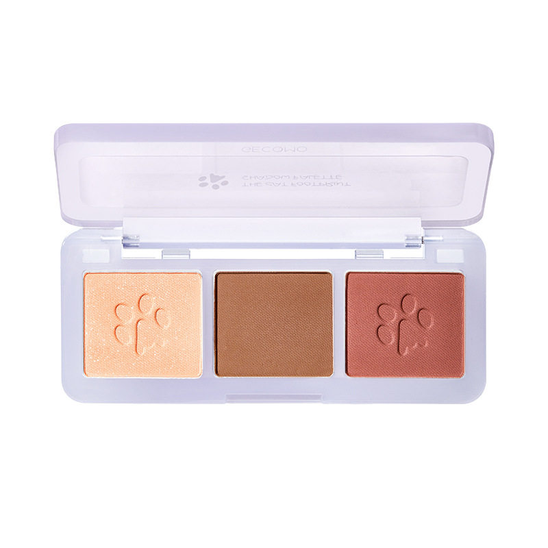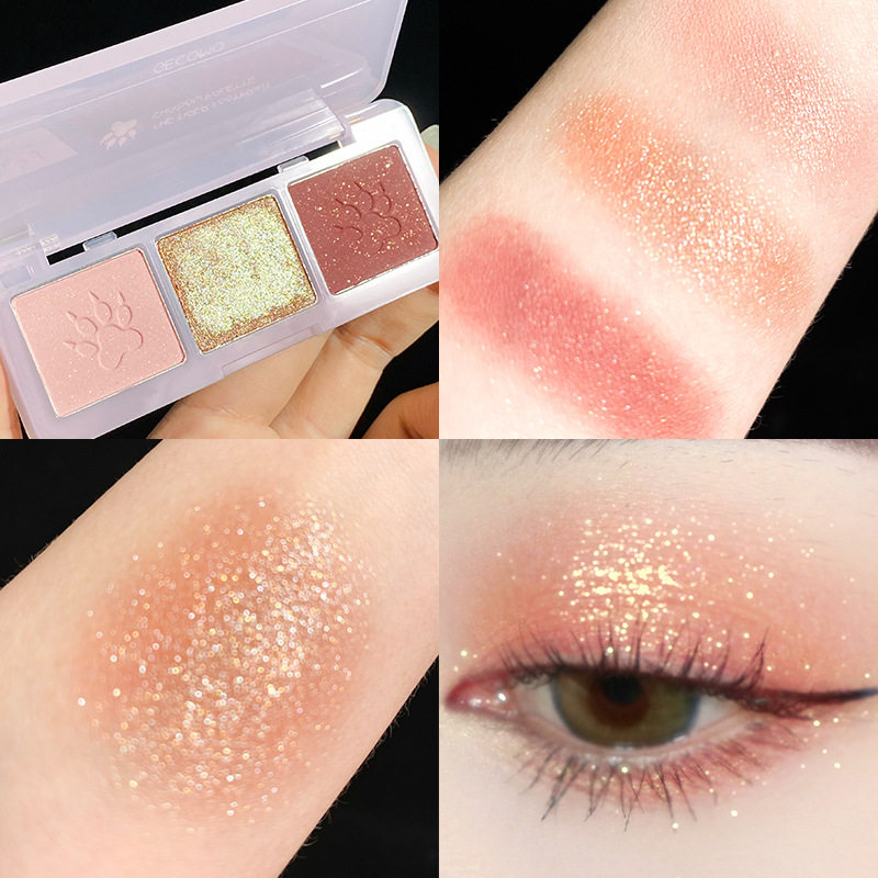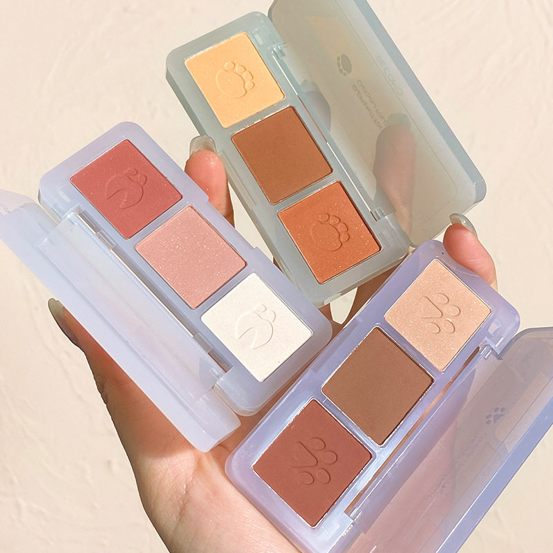 The kitten's paw is cute~mini three-color eyeshadow palette ins super fire pearly niche brand small plate earth color portable
