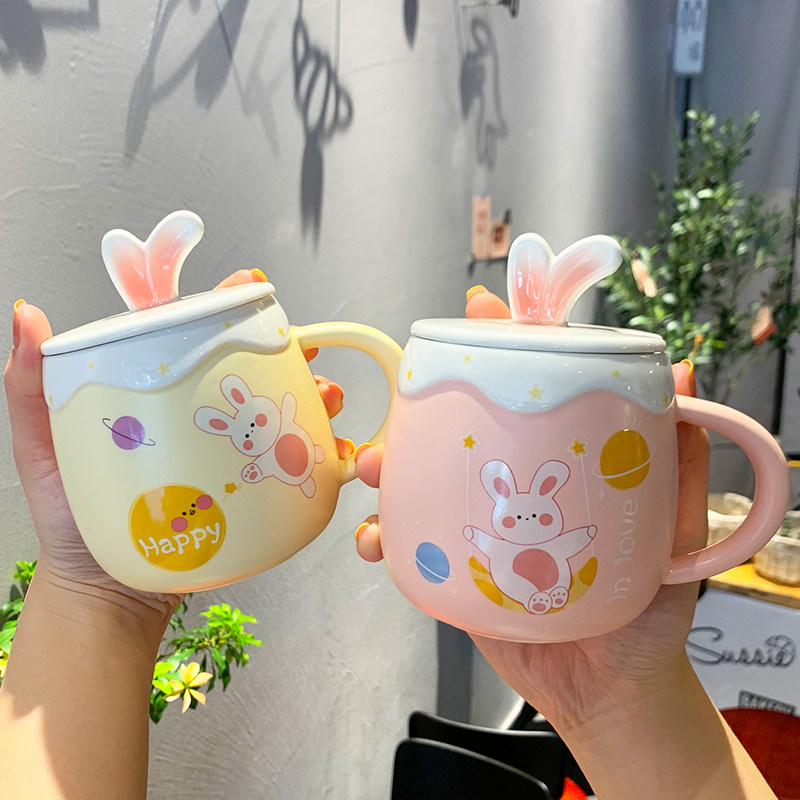 Cup ceramic with lid spoon female cute mug creative home coffee mug lovers' office drinking cup student