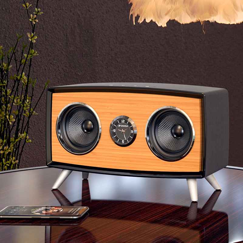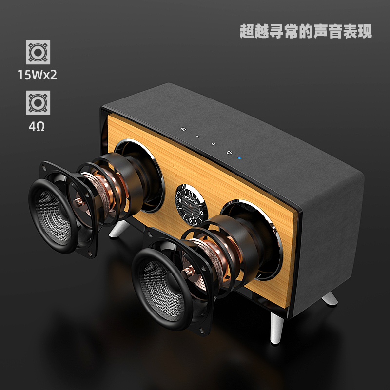 Landscape desktop wireless bluetooth speaker subwoofer high sound quality portable home living room 3d surround wooden retro mini small audio portable small player hifi without distortion