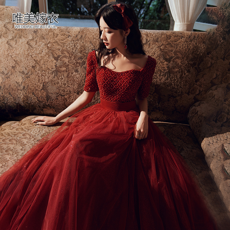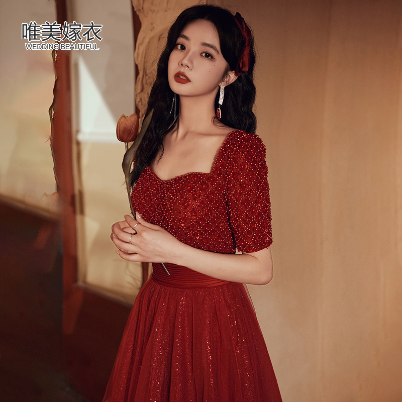 Toast to the bride 2022 new red dress negown engagement back door presiding light extravagant high-end wedding spring summer