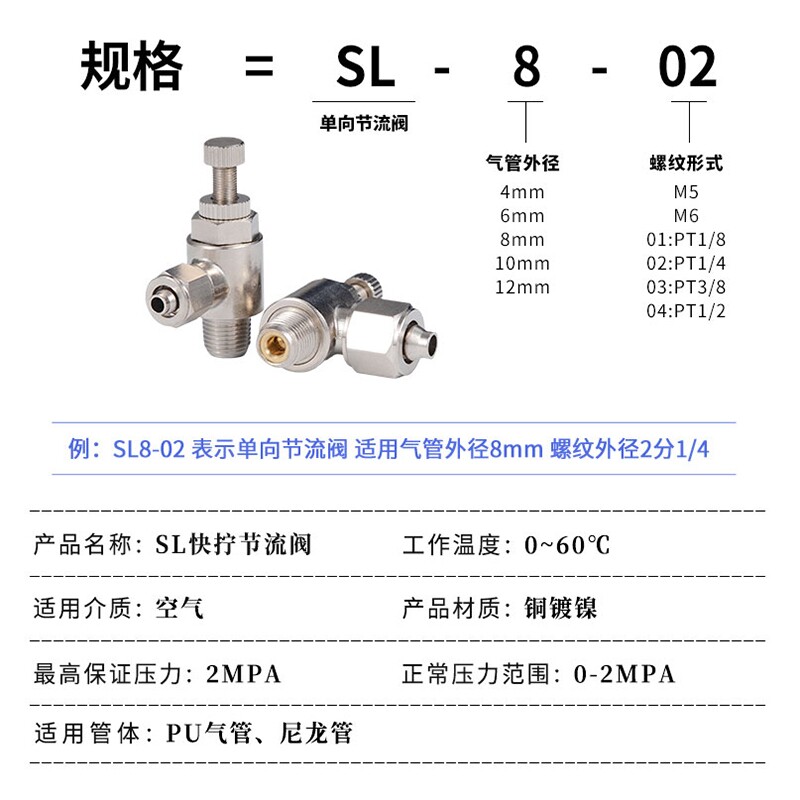 Copper quick twist joint throttle valve SL adjustment pneumatic trachea adjustable speed switch M6 8-01 10-03 12-04