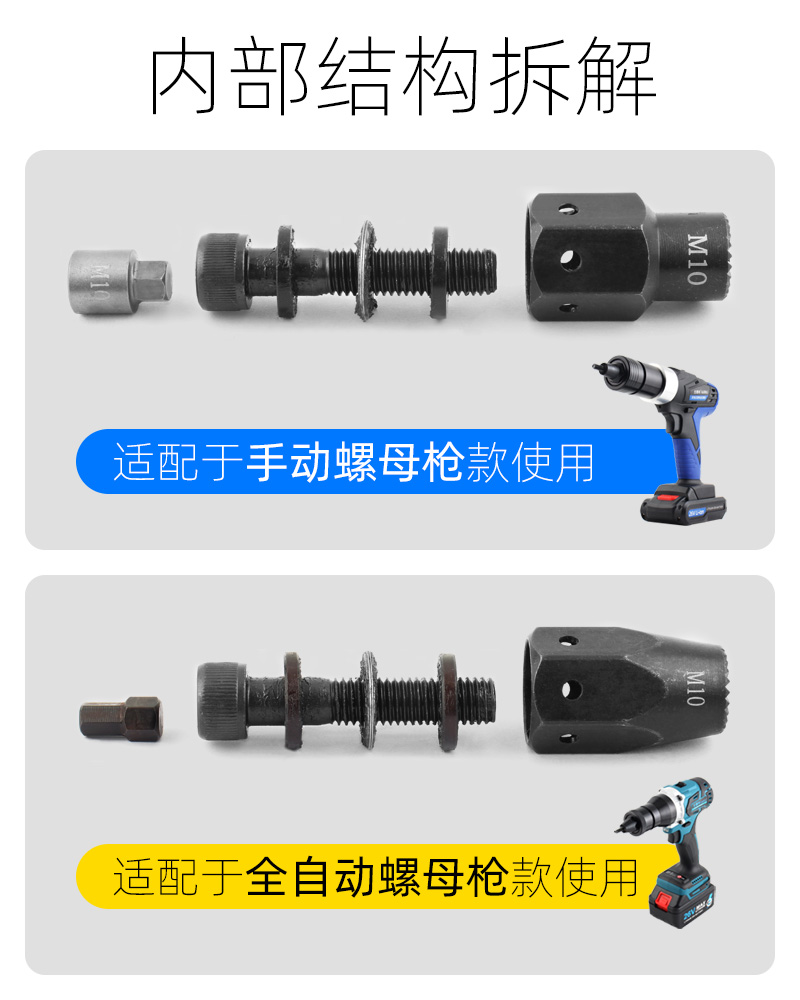 Electric pull riveting nut gun pull-head riveting nut gun M3M4M5M6M8M10M12 Rhengun with a gun head fit