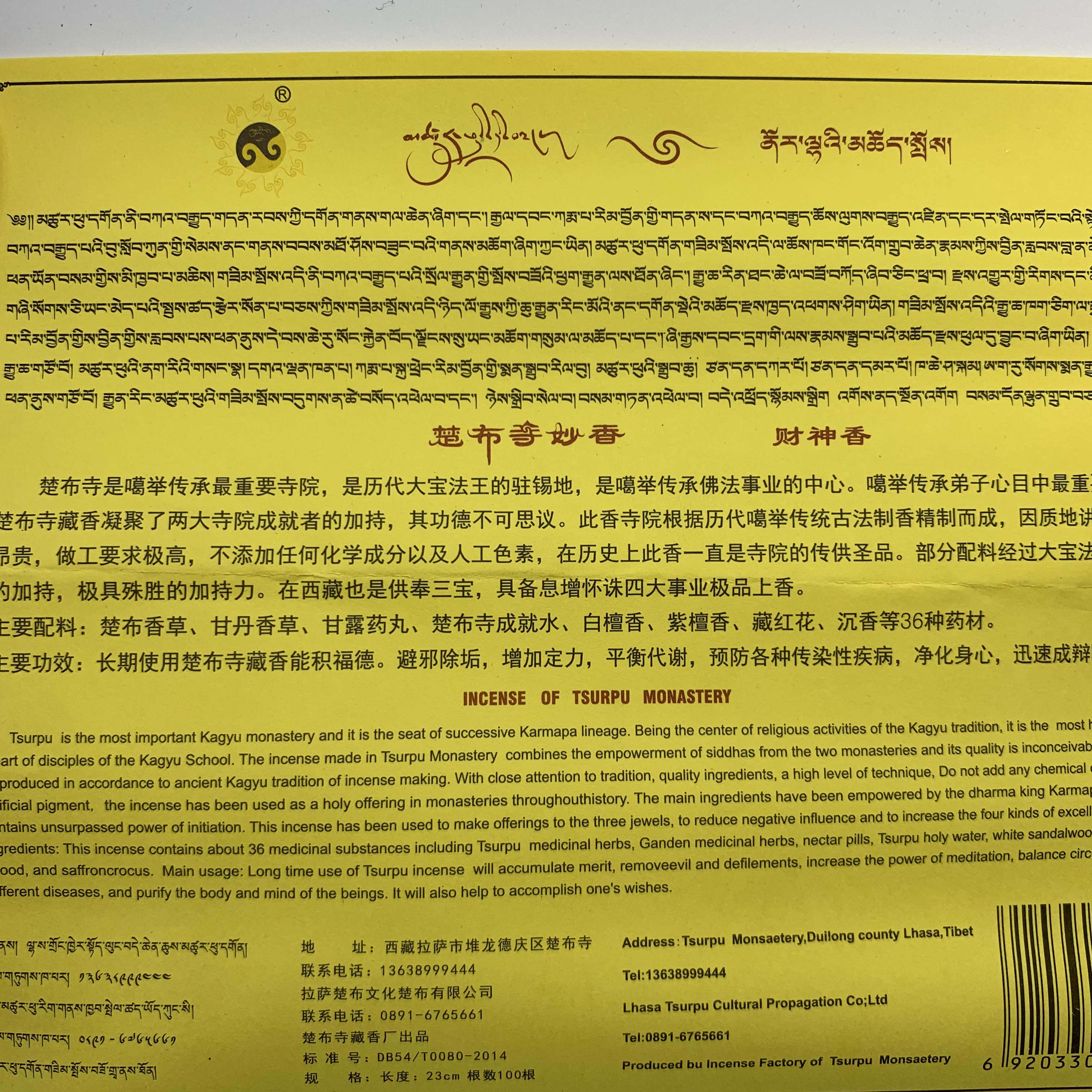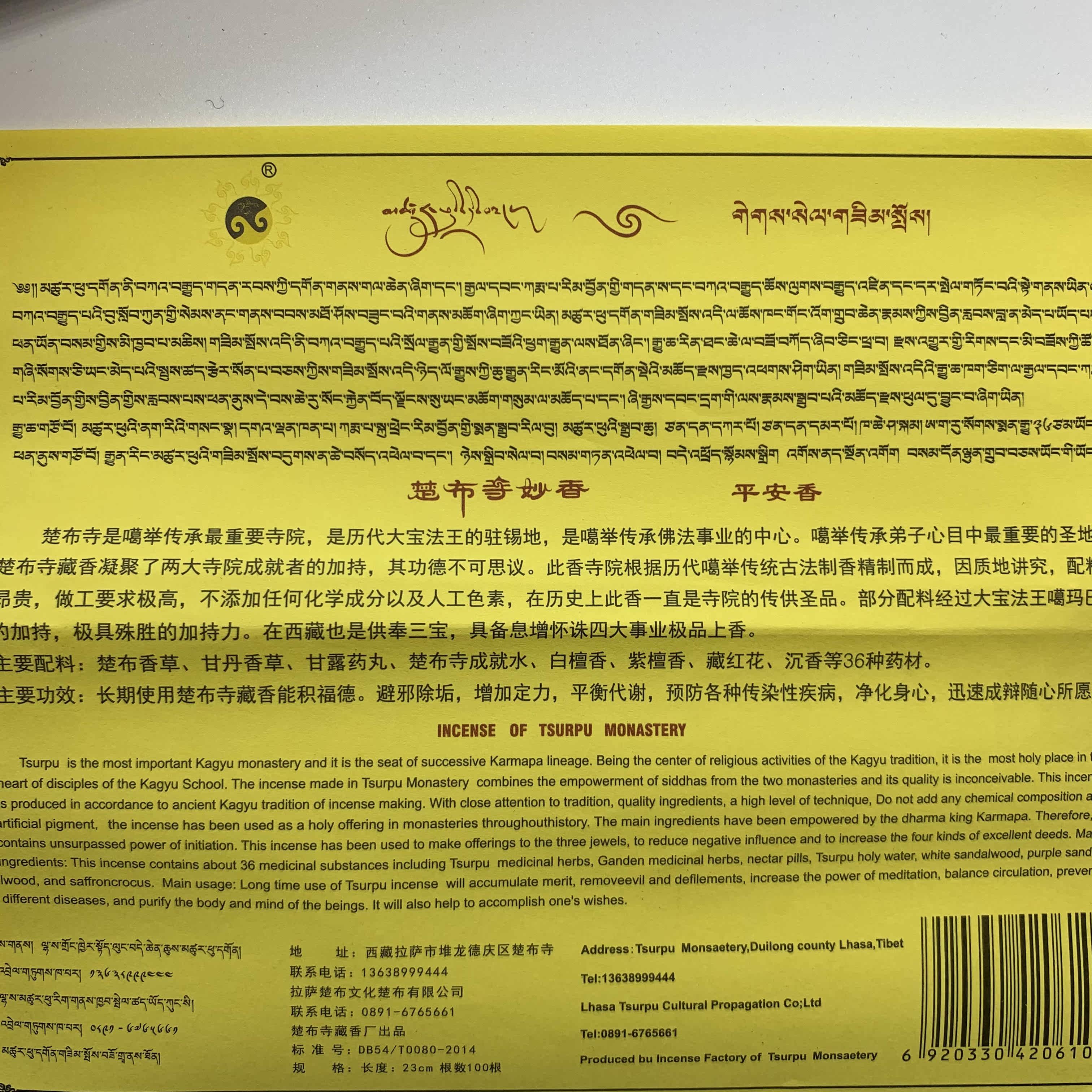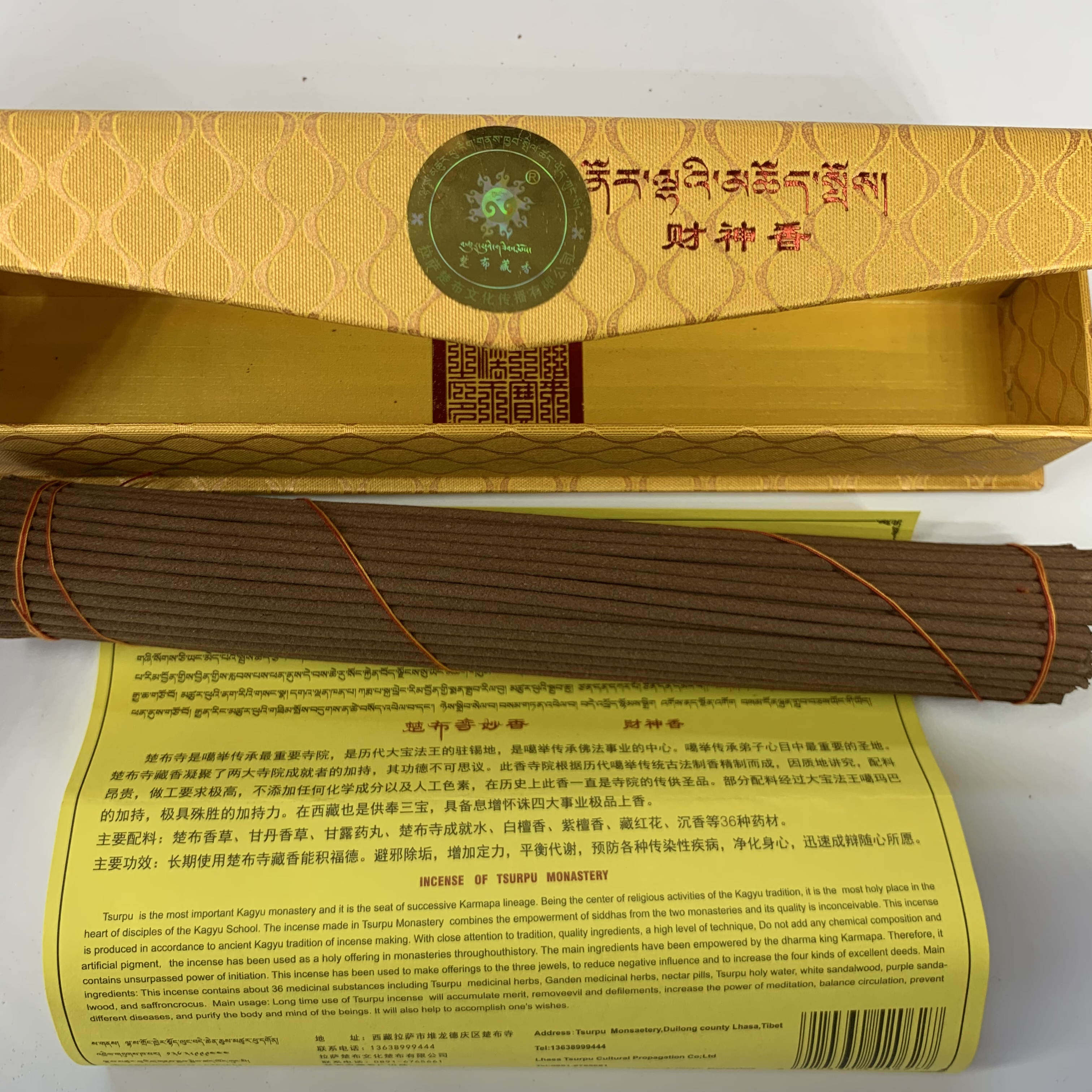 Chub Temple Tibetan incense first class Miaoxiang God of wealth Peace Handmade home meditation for Buddha Plant incense line incense lying incense
