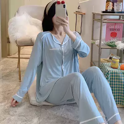 Lunar clothing summer thin model postpartum pregnant women's pajamas 7 months 5 spring and autumn hospitalization maternal nursing home clothing