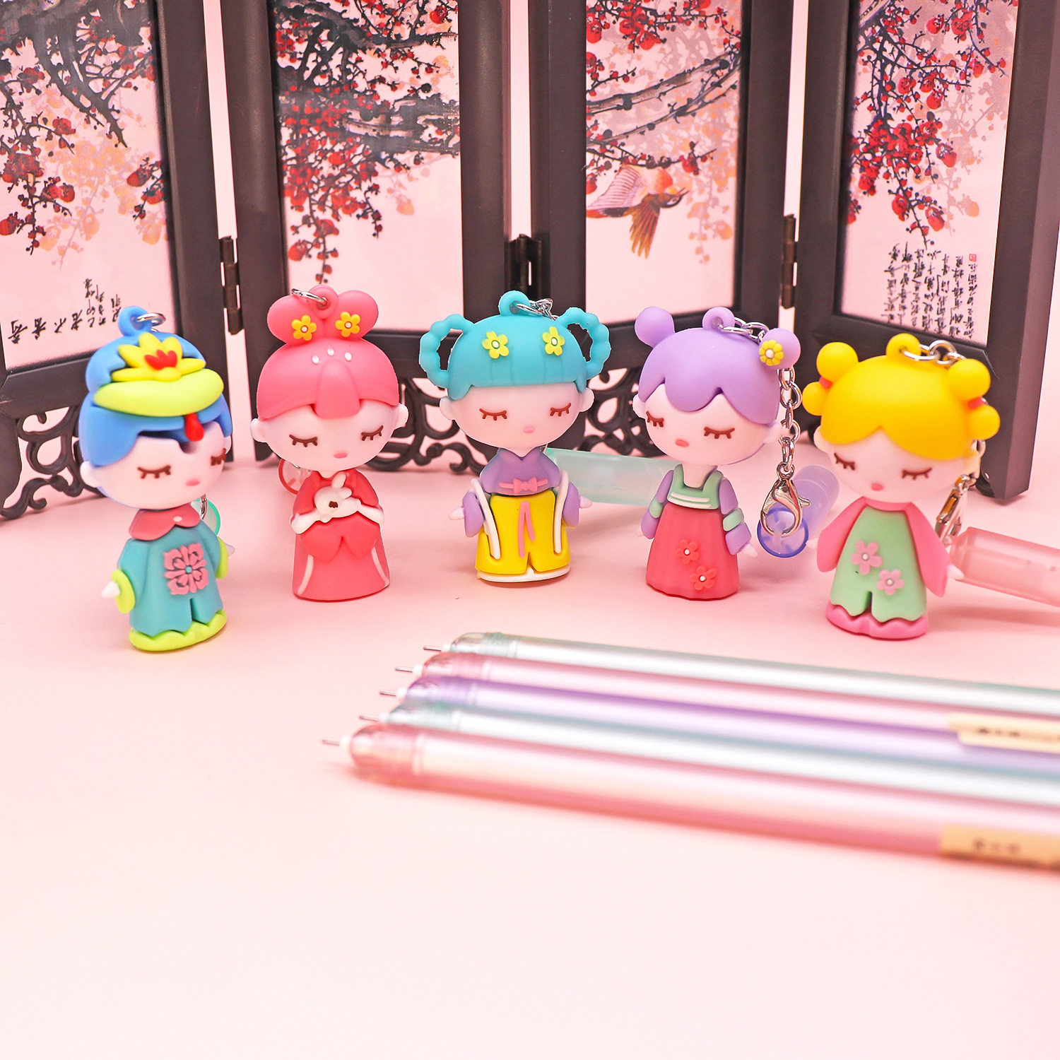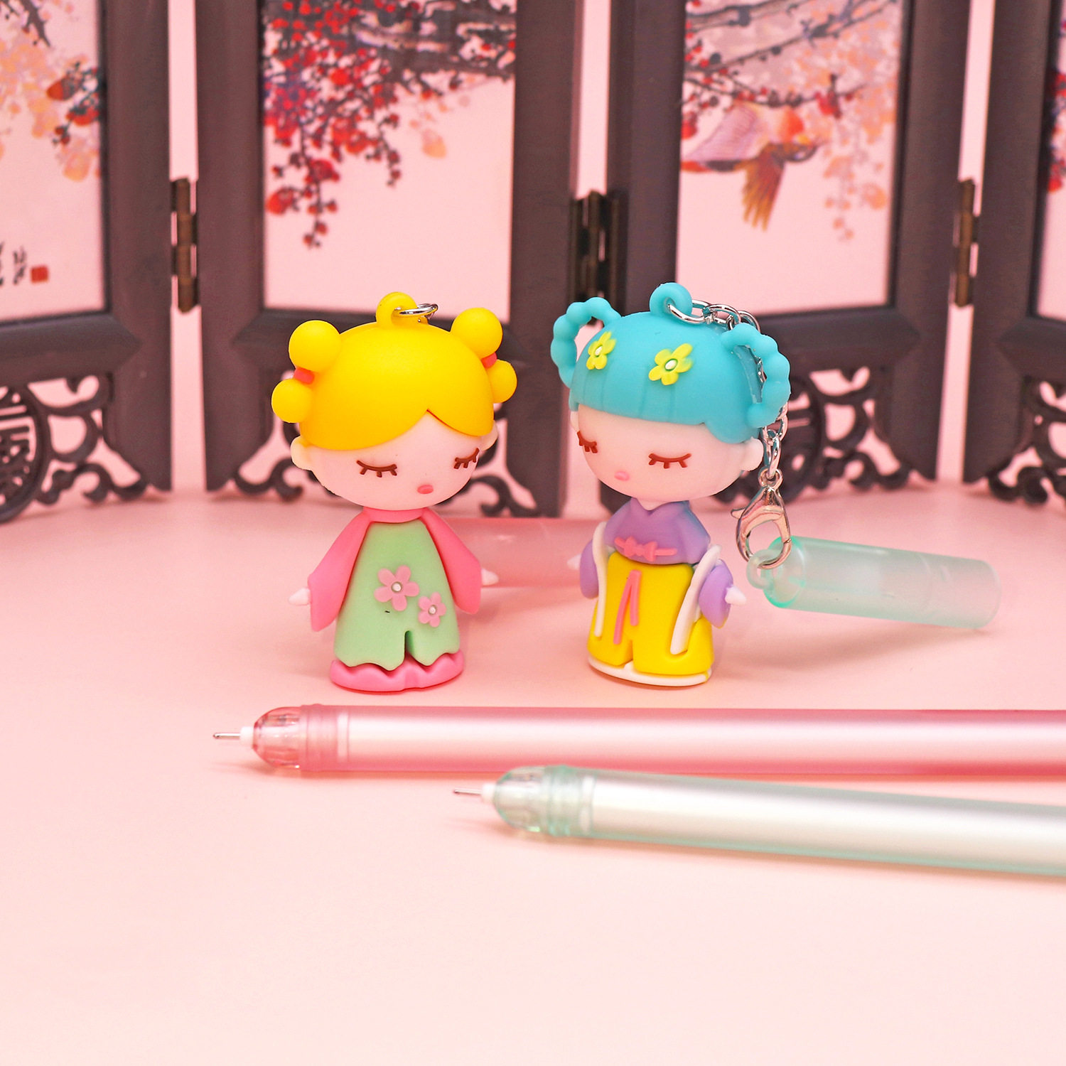 Cartoon pendant pen student stationery cute girl pendant gel pen creative black signature water-based pen