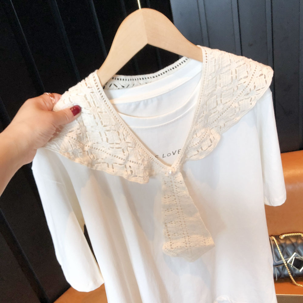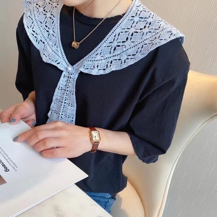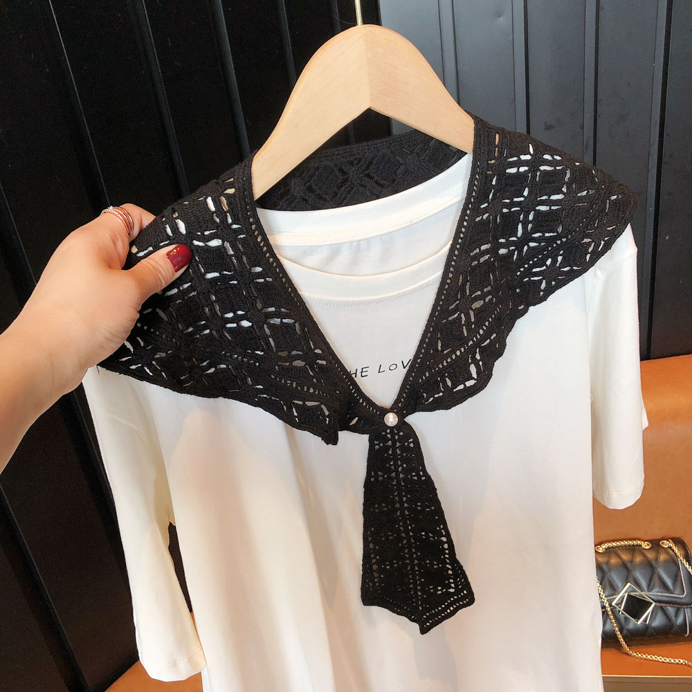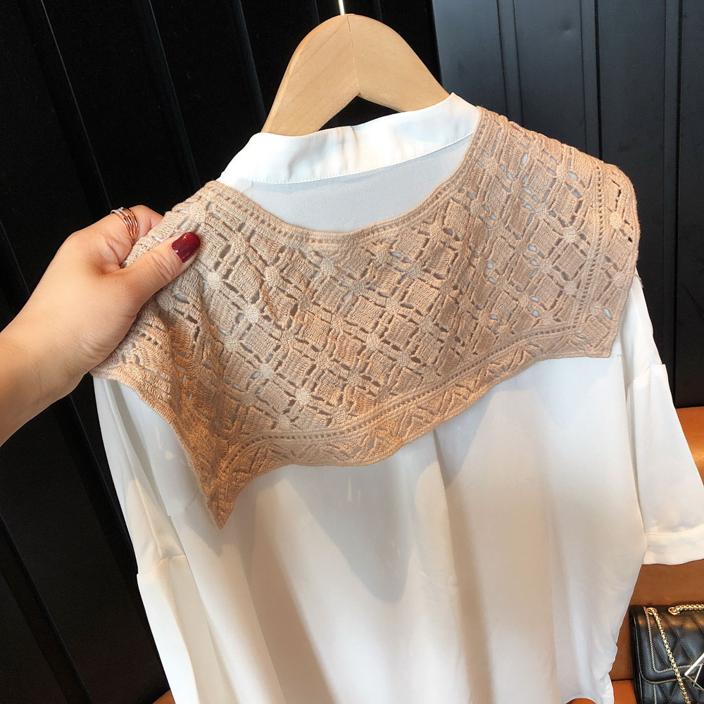 Spring and summer Korean version of thin section hollow knitting crochet lace with fake collar all-match small shawl with skirt and shoulders for women