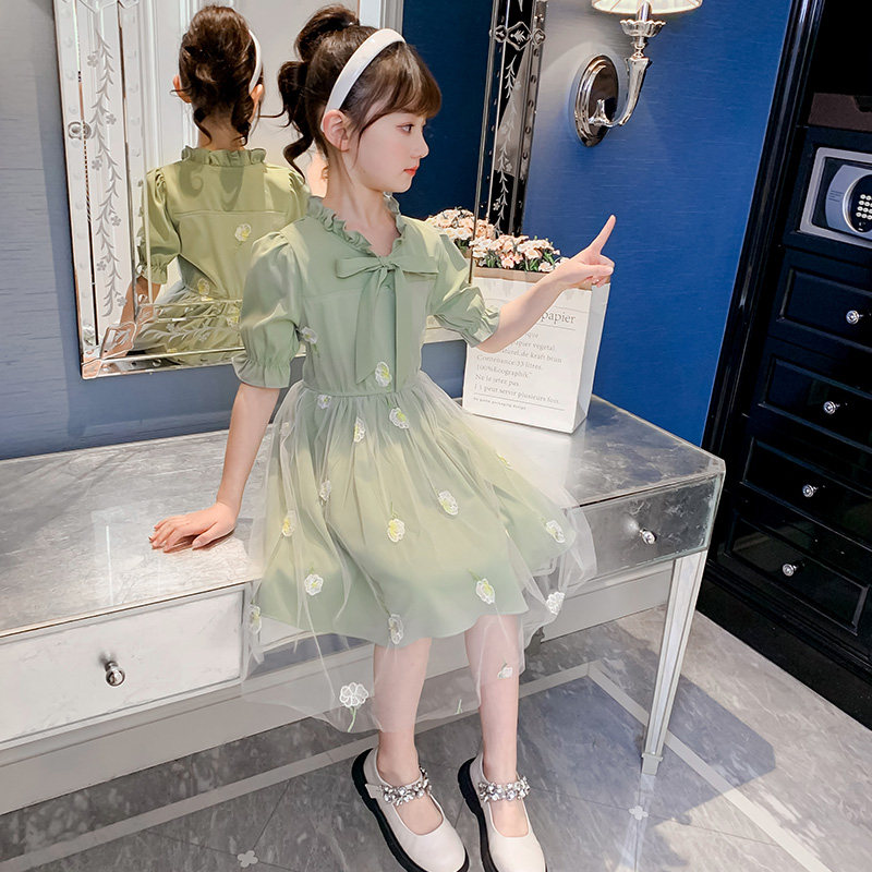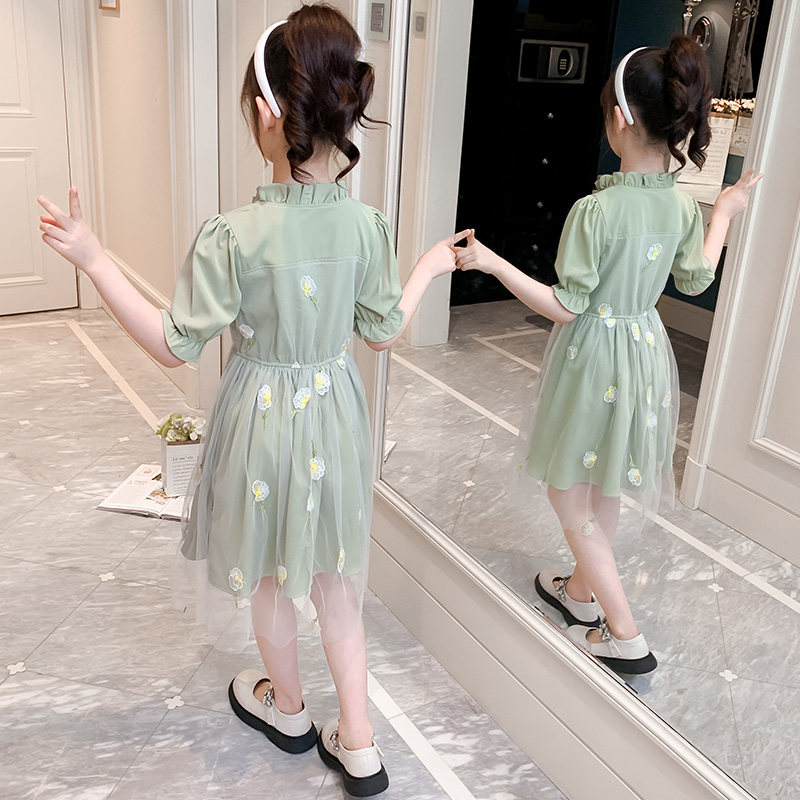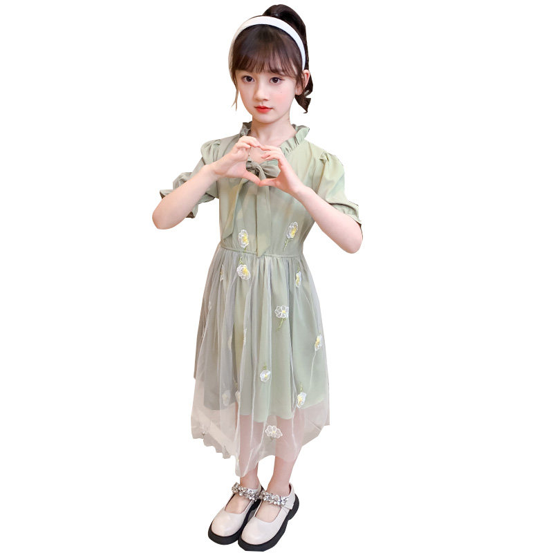 Girls Dress Summer 2023 New Summer Children's Net Red Girl Yellow Small Sleeve Yard Princess Dress