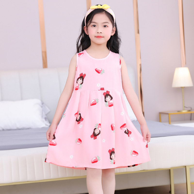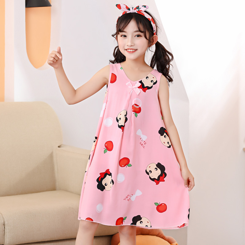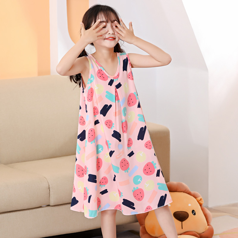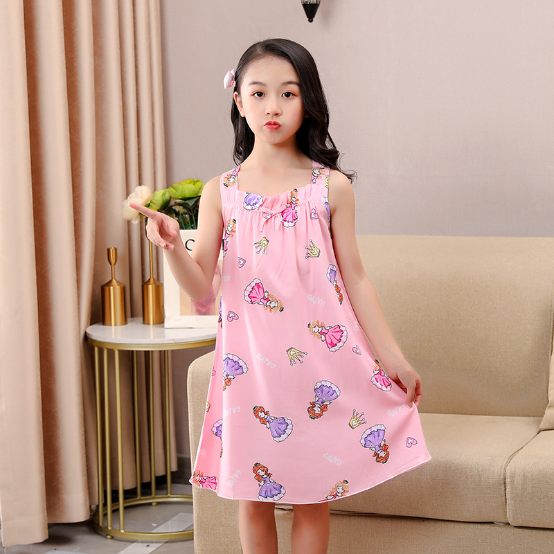 Girl Sleeping Dress Thin Cotton Silk Children Skirt Breathable Summer Dress Princess Comfort Foreign Dress Mid-Child Girl Sleepwear
