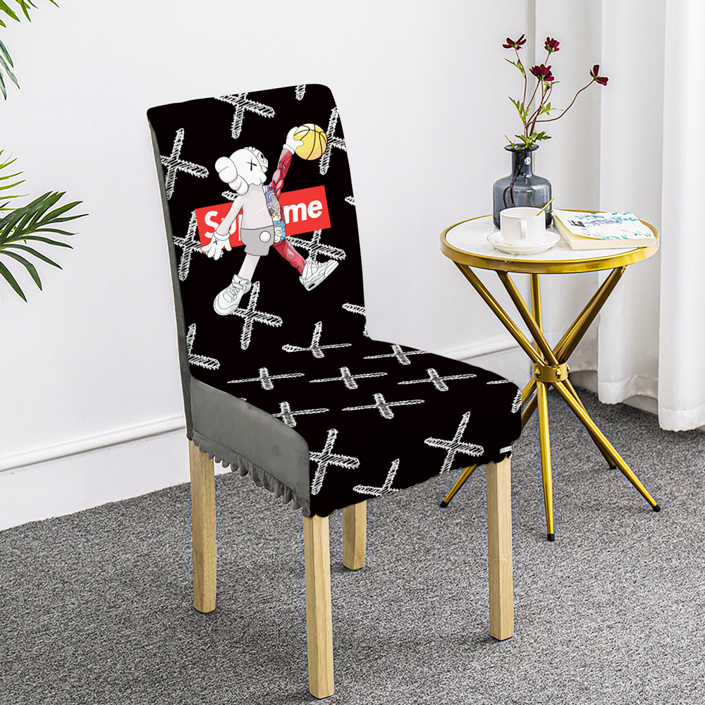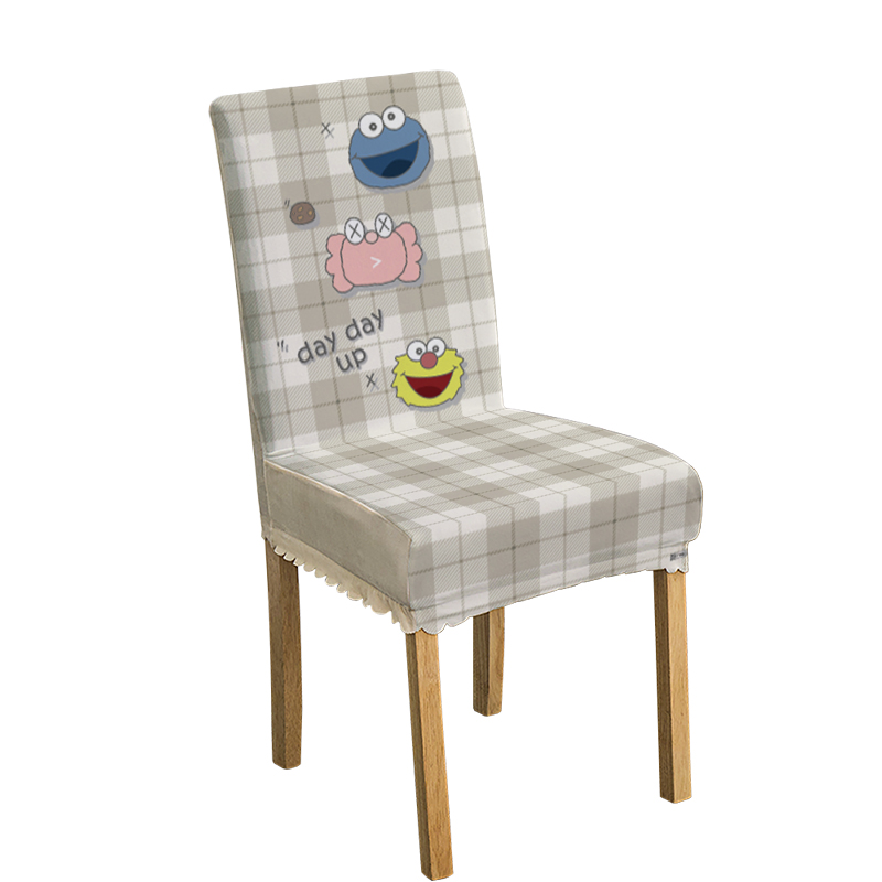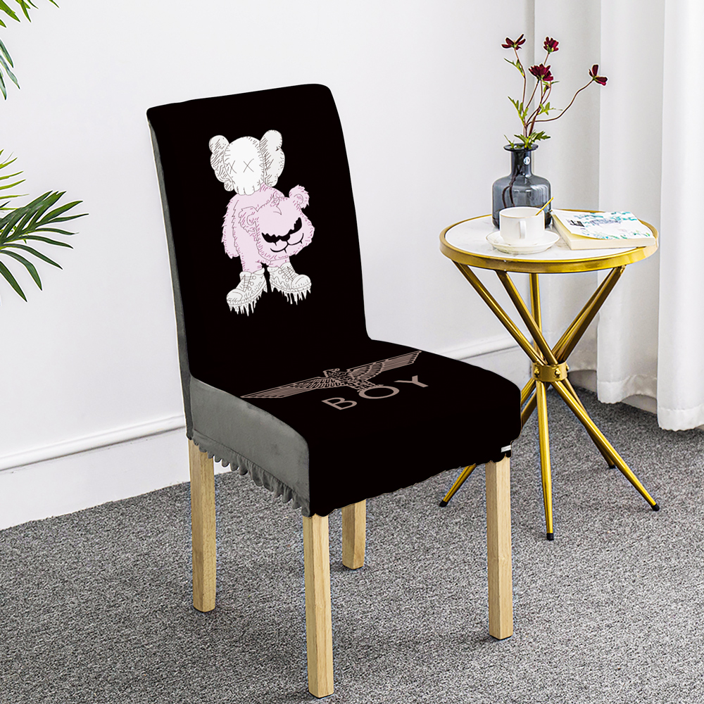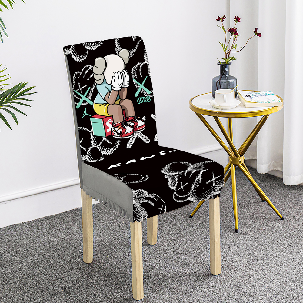 Cartoon printed chair cover black sesame joint KAWS home general dining room hotel elastic padded chair cover chair cushion