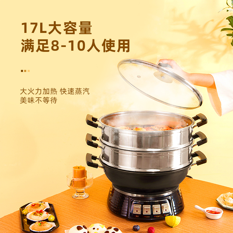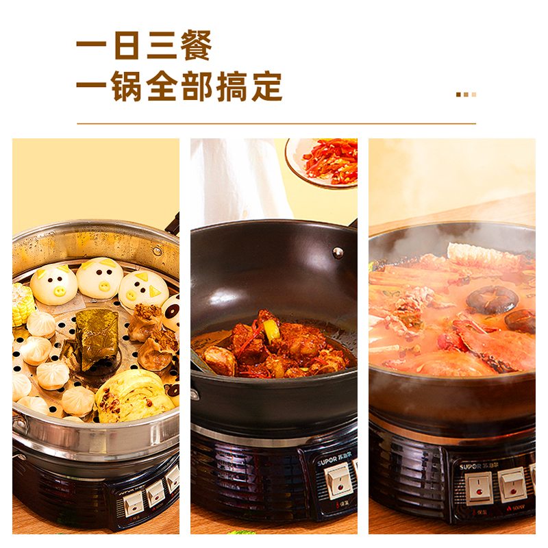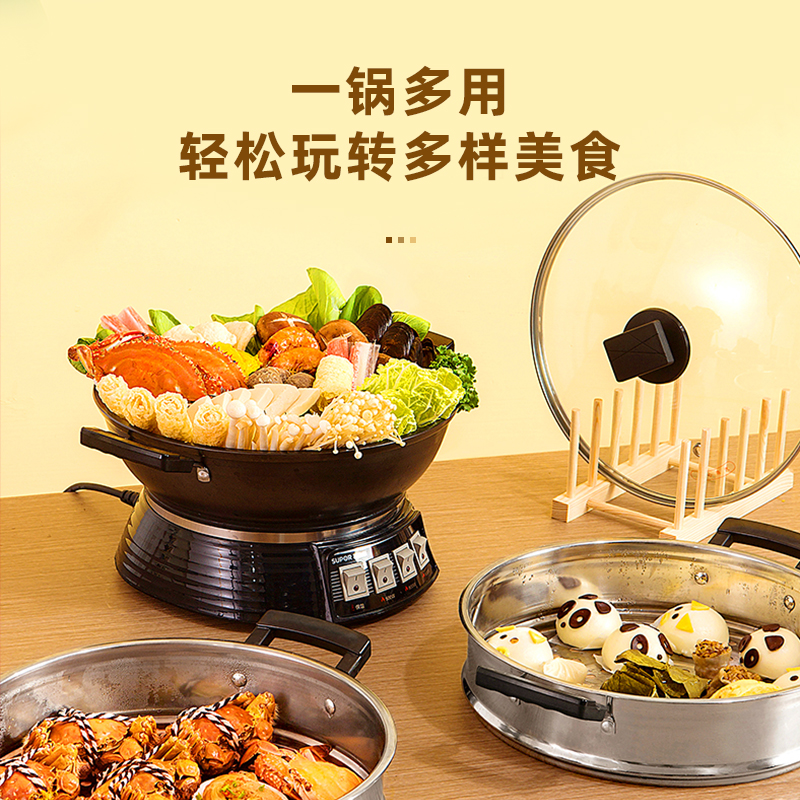 Supoir electric fried vegetable cooking stew iron frying pan household multifunctional integrated large capacity non-stick electric hot hot pot