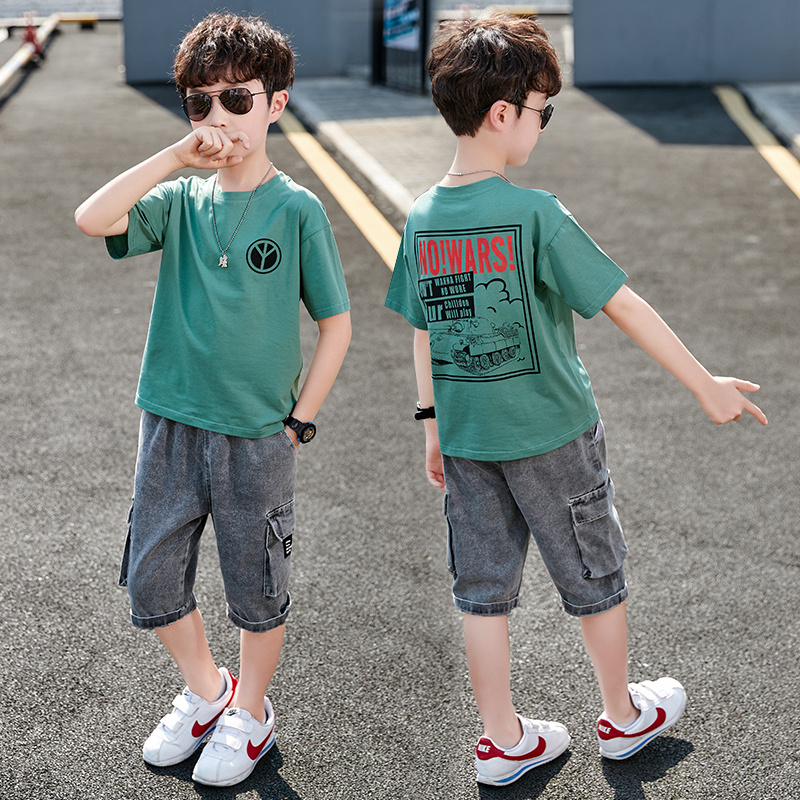 Boy Clothing Boy Summer Clothing Suit 2021 New Summer Boy Foreign Pie Two Sets Summer Handsome Children Short Sleeve Tide