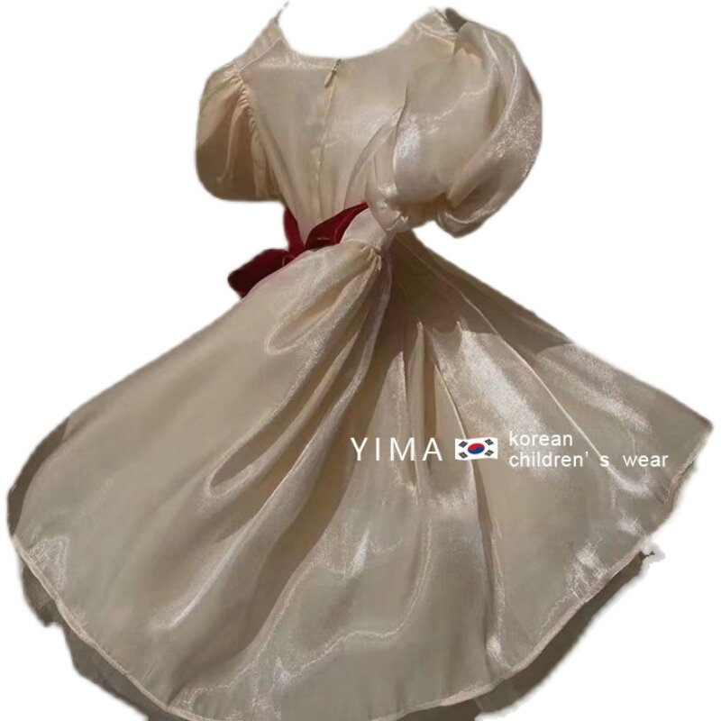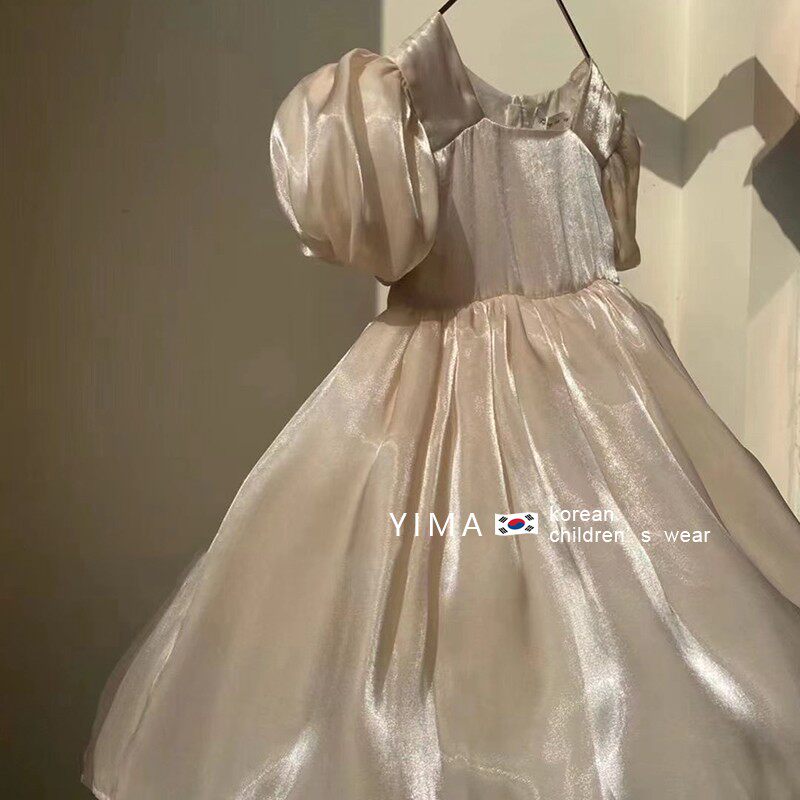 Korean Children's Clothing Girl Bubble Sleeves Fluffy Dress 2022 Spring Summer New Little Girl Foreign Pie Dress Princess Dress