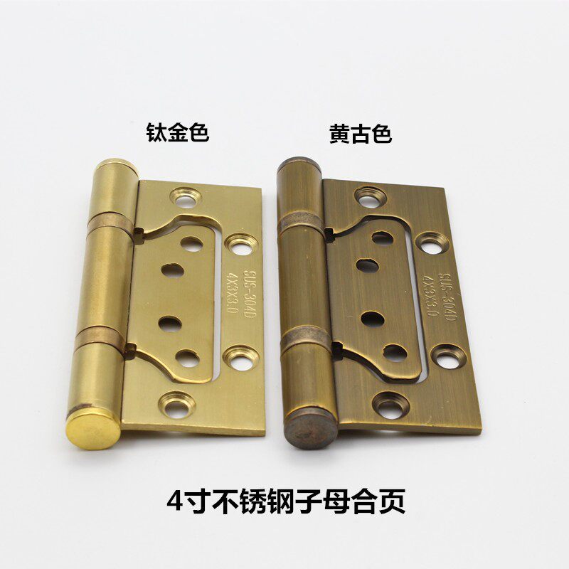 Stainless steel 4 inch mother-daughter hinge door bedroom wood 5 inch lotus leaf free slotted butterfly silent gold black home
