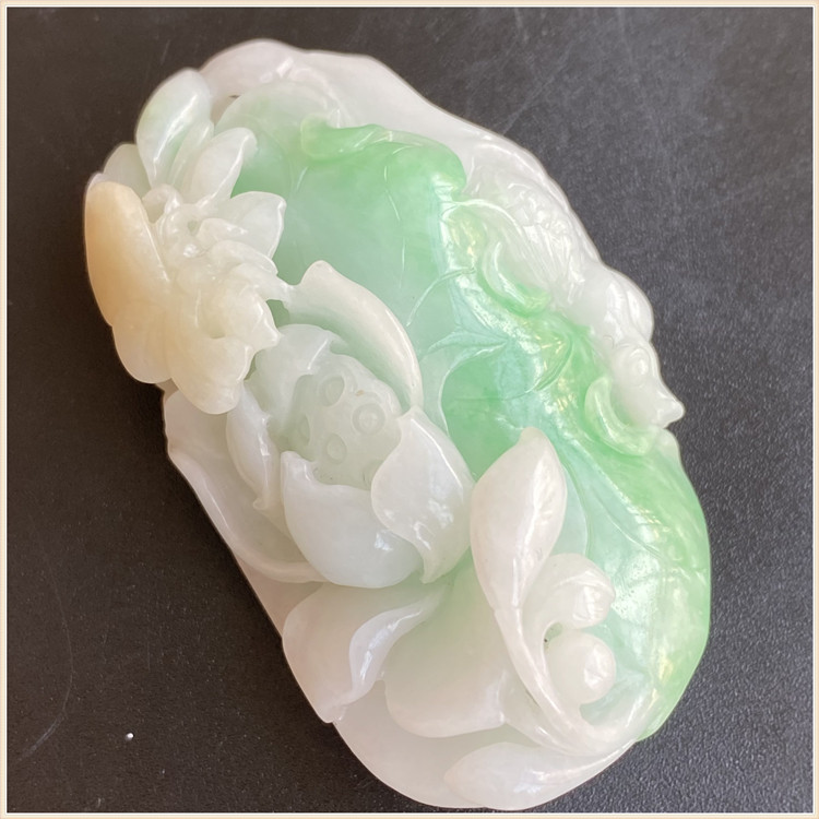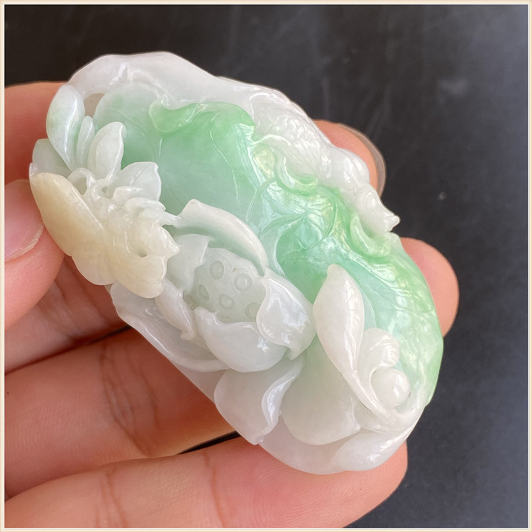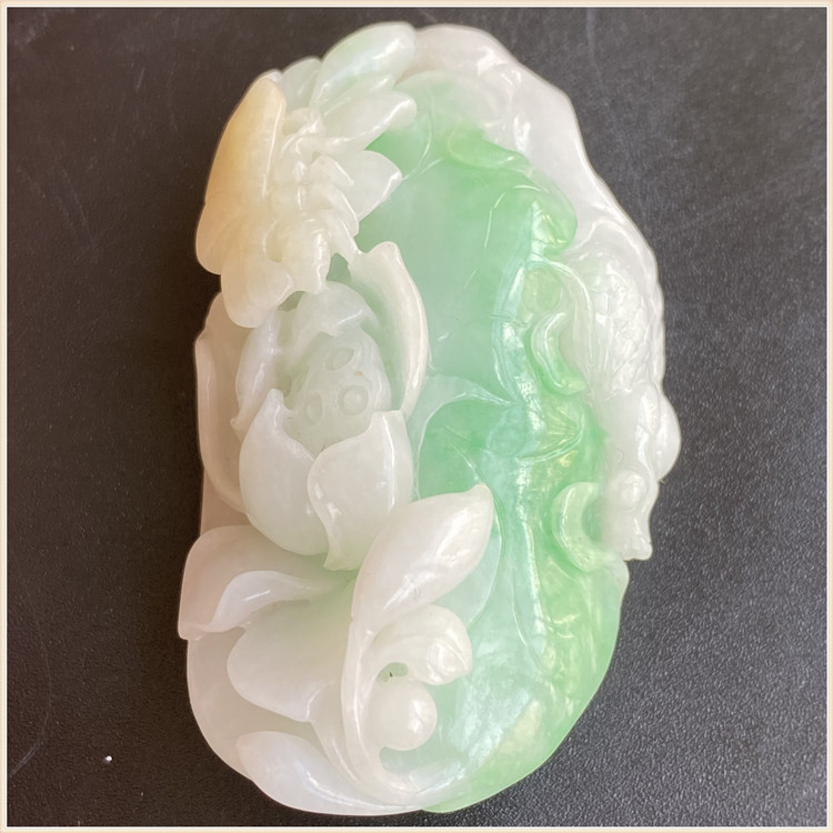 Myanmar emerald yellow plus green pendant for years with golden fish lotus lotus flower butterfly romance flower pendant one figure