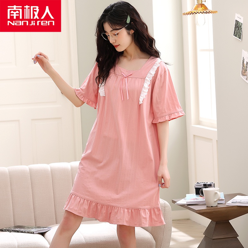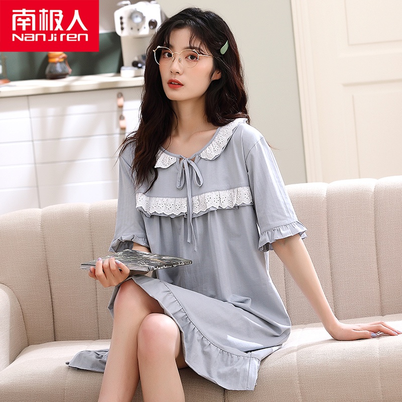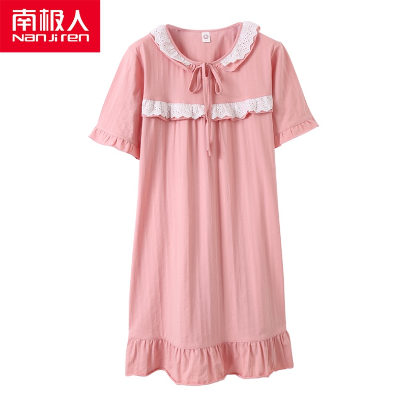 South Pole Sleeping Dress Woman Spring Summer Pure Cotton Short Sleeve 2021 New Palace Princess Wind Sweetness And Beauty Windy Sleeping Clothes