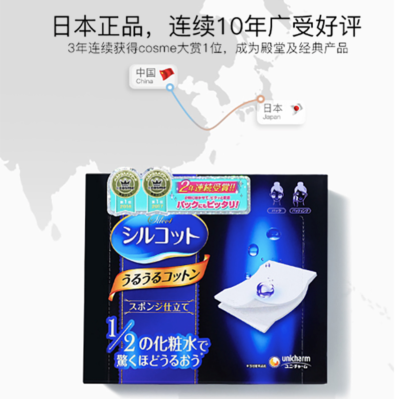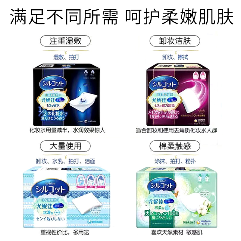 Japan imports Yunija Unicharm Shukom Makeup Cotton 1 2 Wet Dressing Moisturizing water Makeup Cotton Silcot
