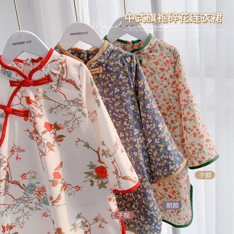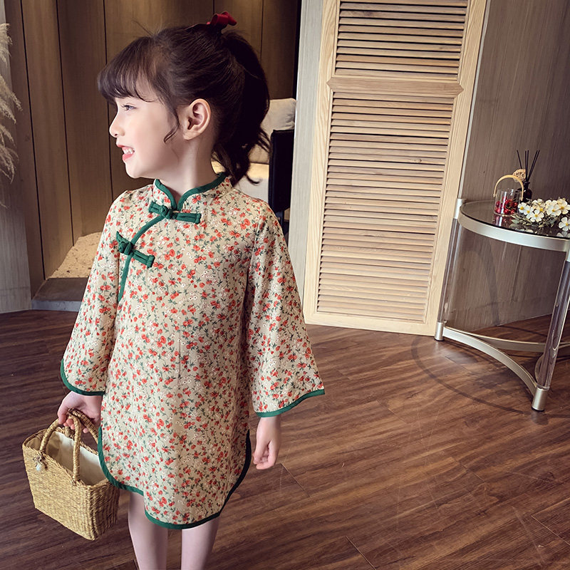 Girls cheongsam skirt spring dress new children's Chinese style floral chiffon dress spring and autumn little girl Tang dress skirt