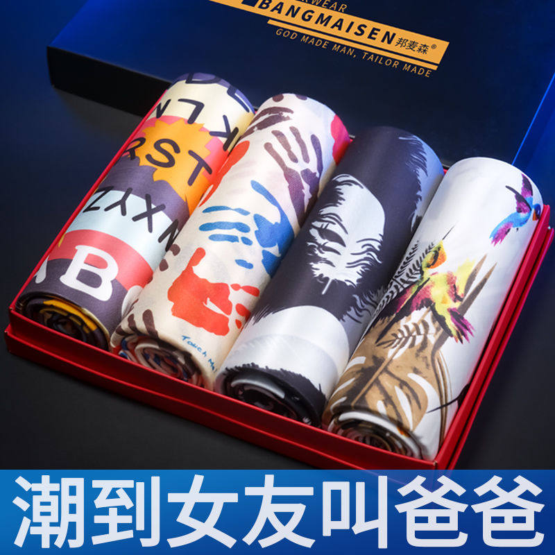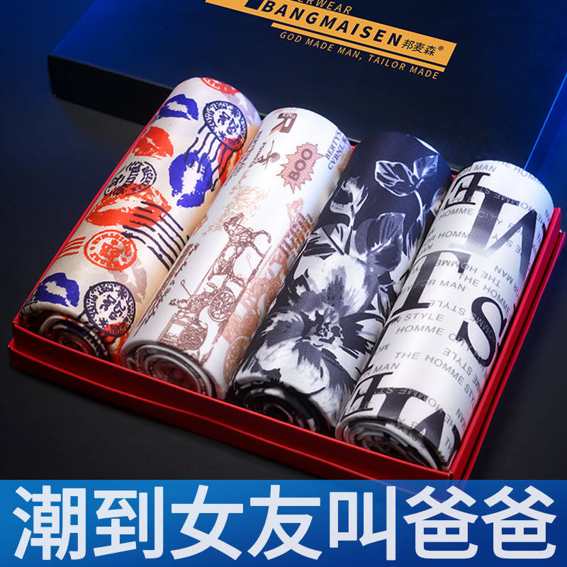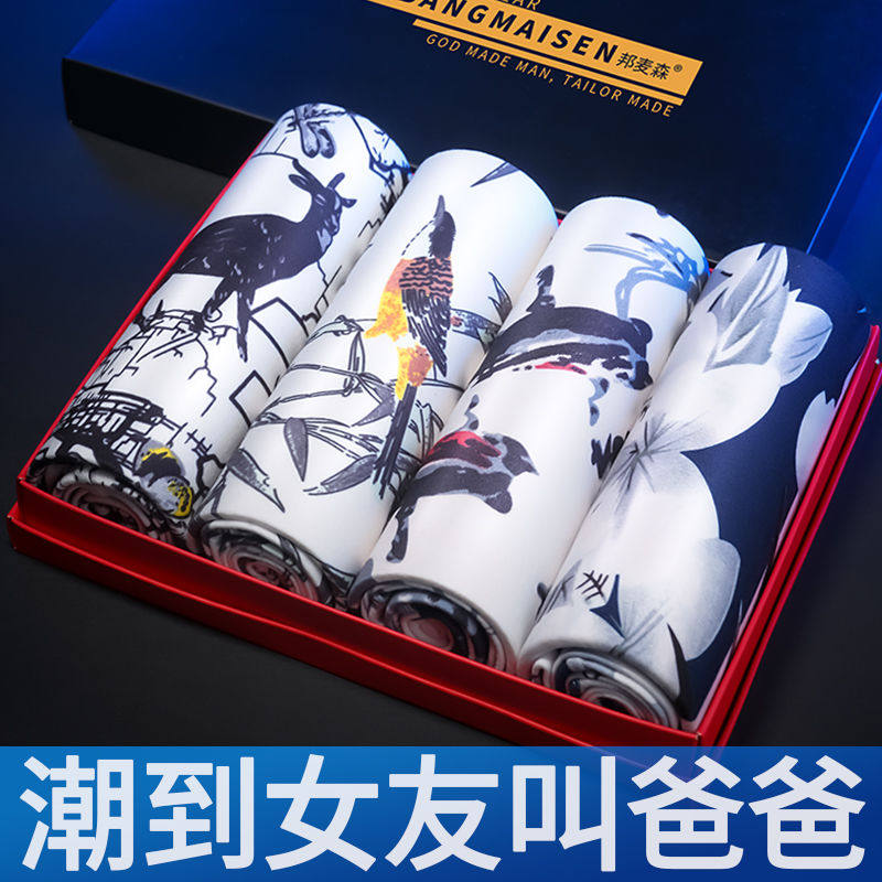 4 strips of ice silk men's underpants Korean version Summer Chatide men's unscarred four-corner pants mid-waist comfortable and breathable four-corner pants