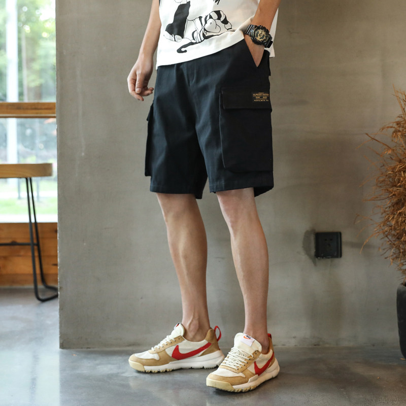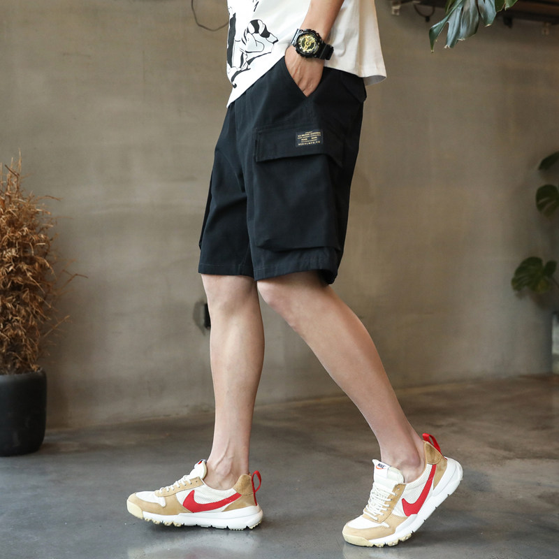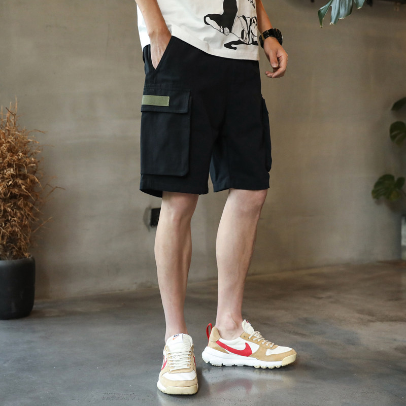 Hong Kong Tide Card Tooling Casual Shorts Male Trend Loose summer men wear black 5-50% pants Ins pants
