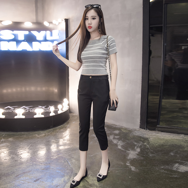 2022 Summer new 100 hitch slim fit Casual Seven Pants Woman High Waist Black Small Feet Pencil Western Fit Pants