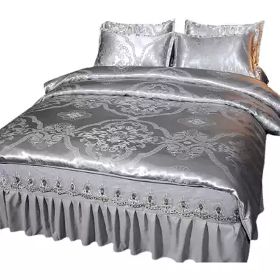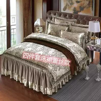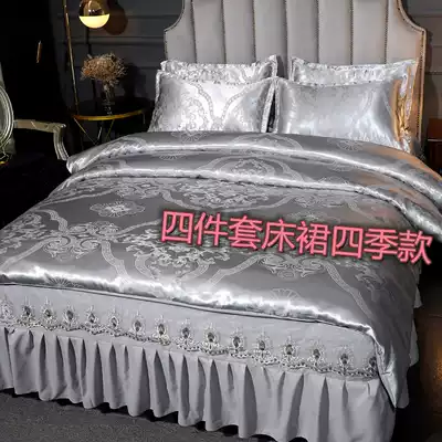 Xia European style tribute satin flower four-piece cotton light luxury high-end pure cotton simple non-slip lace Thick bed skirt bedspread