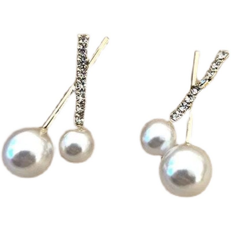 Light and luxurious four pairs of Asymmetrical Butterfly Knot Ear Spiked Water Drill Ear Nail Water Drill Pearl Cross Pearl Flower Ring Ear Pin