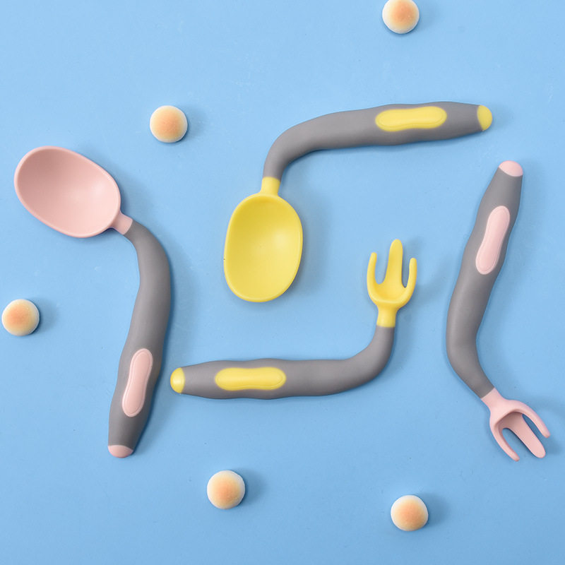 Baby Feeding Vice Food Tablespoon Children Learn Eating Training Fork Spoon Baby Cutlery Bendable Bending Twist Twist Spoon Suit