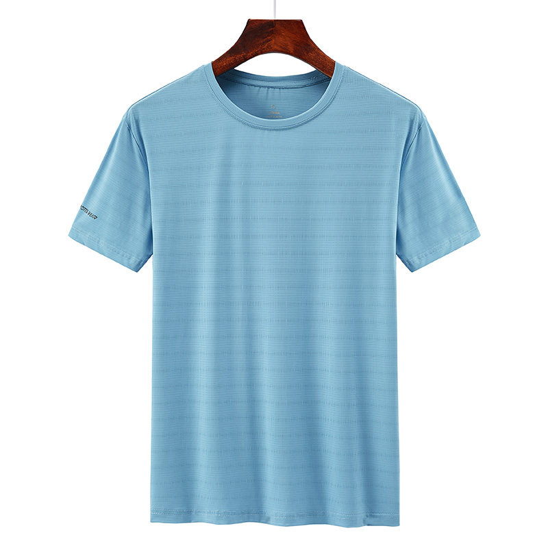 Ice silk short-sleeved quick-drying clothes men's breathable sweat-absorbing summer fitness running large size loose outdoor sports T-shirt