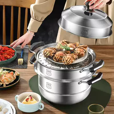 Steamer household 304 stainless steel thickened three layer large steamer 2 layer steamed fish steamed buns induction cooker gas stove for gas stove