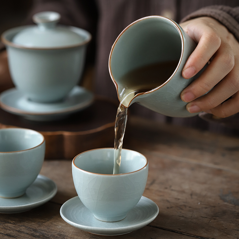 One Party Tea House Day Style Ru Kiln Justice Cup Tea Sea Home Ceramic Sub Tea Instrumental Kongfu Tea With Open Sheet Can Raise Boutique