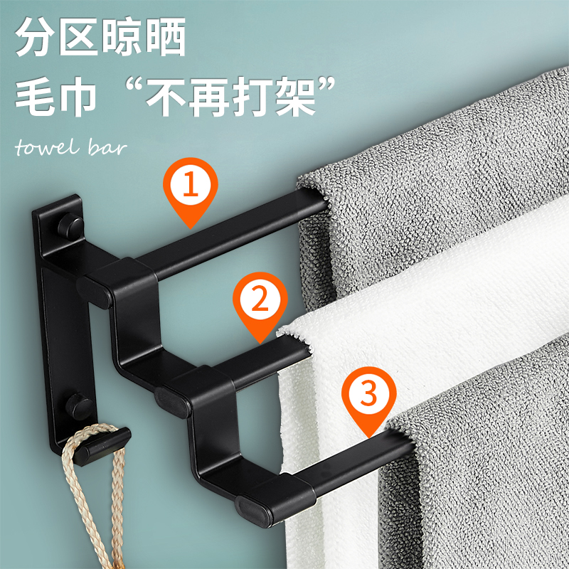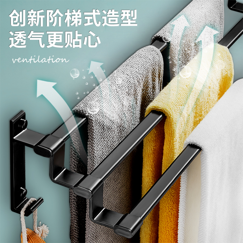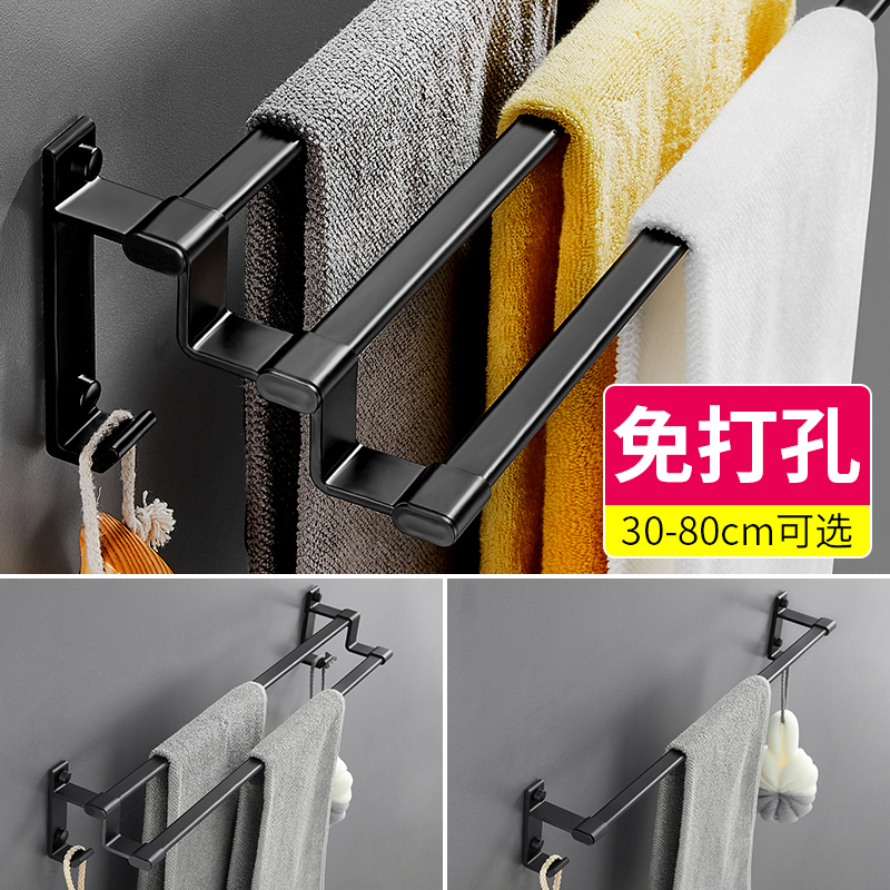 Black non-perforated powder room towel bar drying towel rack Space aluminum single rod towel rack bathroom shelf