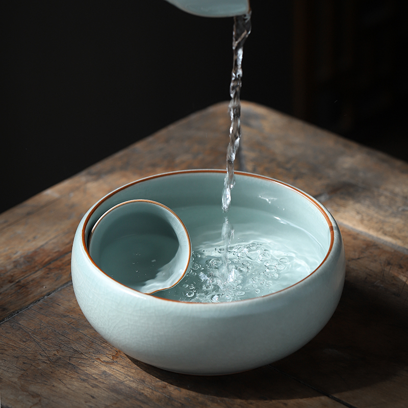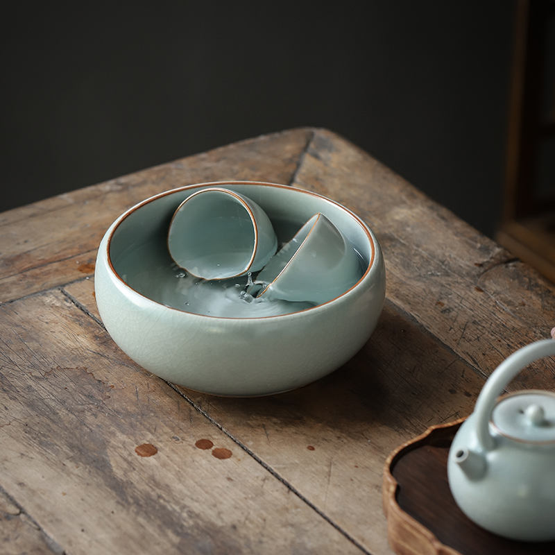 Retro Tianqing Ru Kiln Tea Wash Large Number can raise open sheet Ceramic Cup Wash Home Tea Gittoon Upscale Handmade Utiliti tea furniture