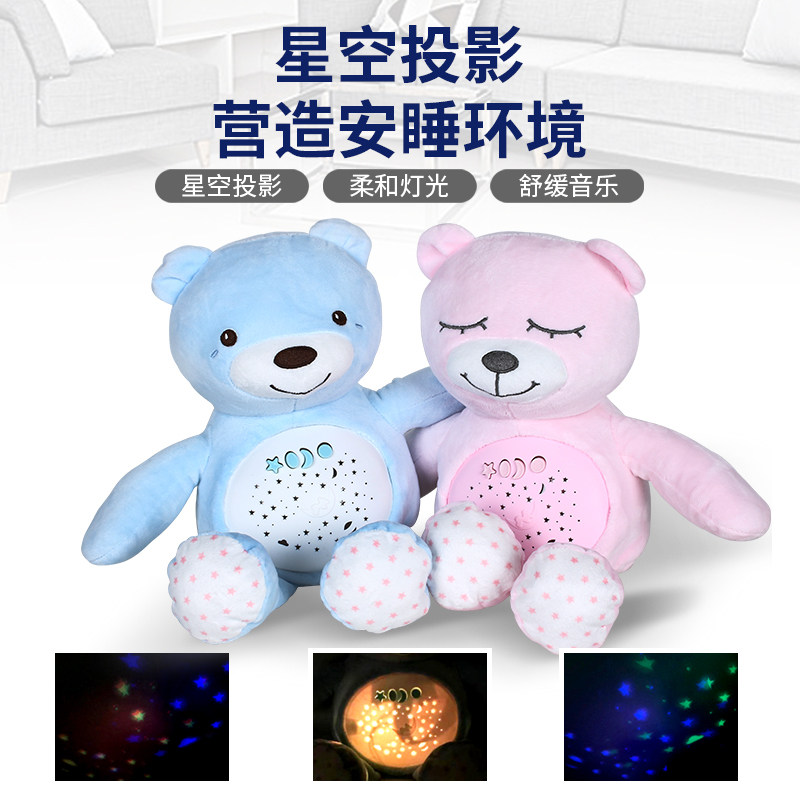 Infant comfort and sleep music plush toy blue cartoon bear doll doll Valentine's day birthday gift