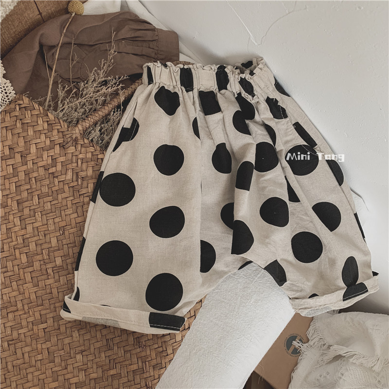 Full of vitality ~ 2021 summer clothes baby big polka dot Sen line cotton and linen big PP pants children's comfort cross pants