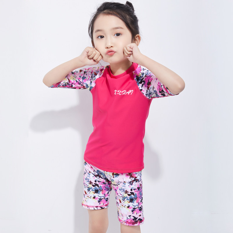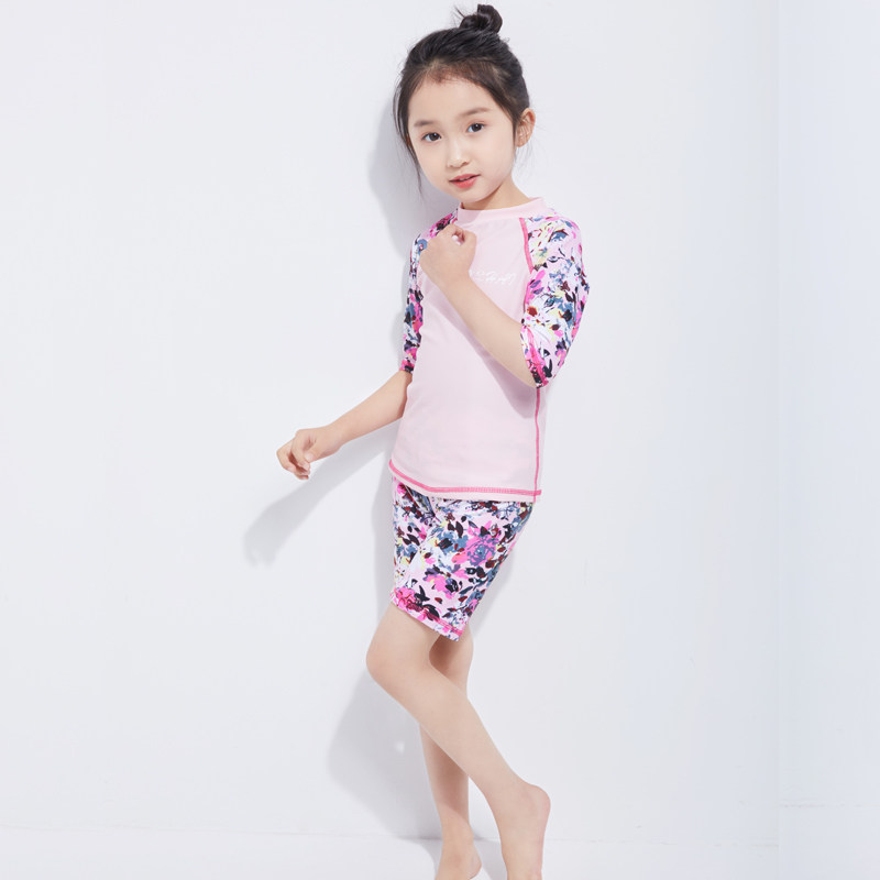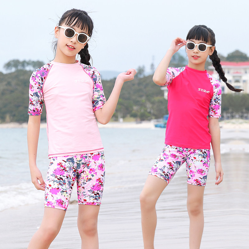 Children's swimsuit women's split girls' swimsuit quick-drying girl middle-aged and older children's middle-sleeved western-style sunscreen 2021 new