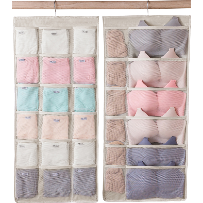 Mesh hanging bag (front 2 compartments + reverse 6 compartments) - beige (2 pieces)