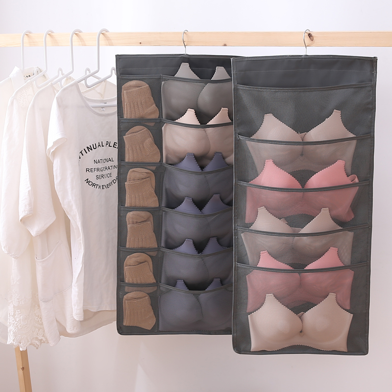 Mesh hanging bag (front 2 compartments + reverse 6 compartments) - gray (2 pieces)