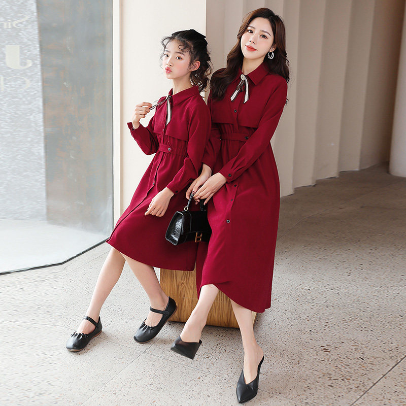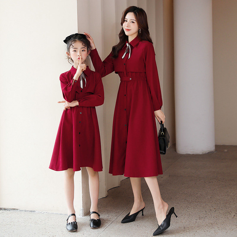 Mother and daughter in a dress.