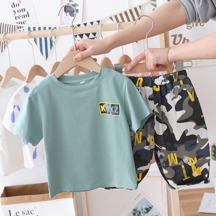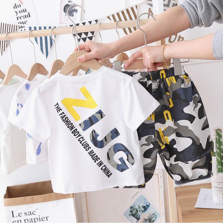 2022 Summer New Boy Summer Clothing Slim Fit Suit Children's Baby Girl Baby Camouflak Shorts Kid Handsome-Taobao