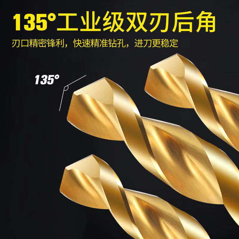 Tiangong M42 high cobalt super overlord drill stainless steel special drill bit titanium plated Co8 plus hard straight handle twist drill
