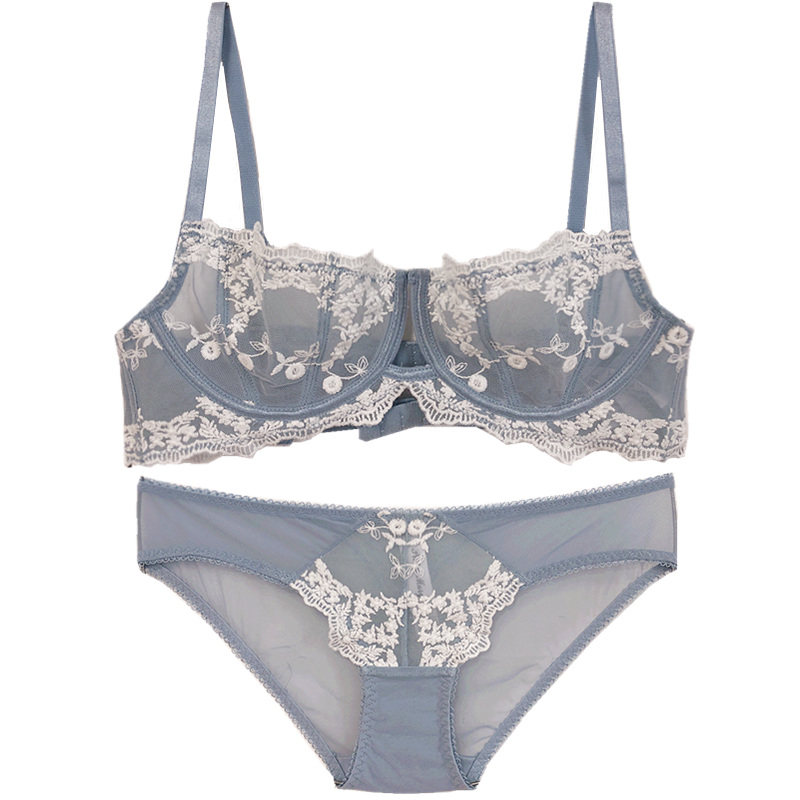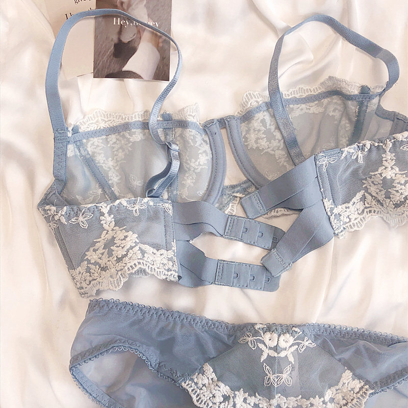 French embroidery lace sexy transparent steel ring ultra-thin underwear set big chest small gathering bra milk cover