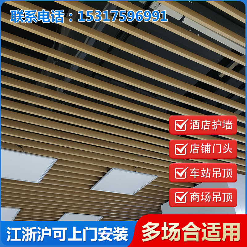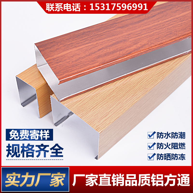 Aluminum square suspension ceiling u trough groove grille ceiling wooden square aluminum square aluminum square tube profile screen partition