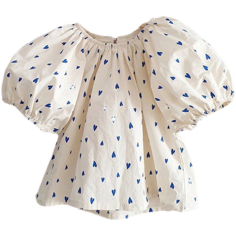 South Korean children's clothing pro-children 2022 new wave Summer Mother Women's dress Bubble Sleeves Fashion Loose Love Shirt