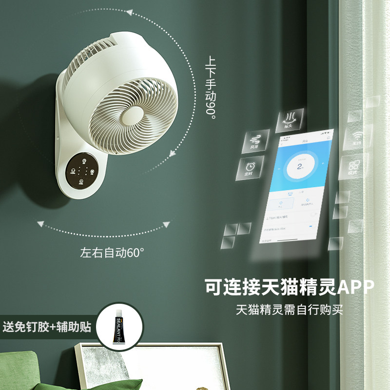 Wall-mounted circulation fan remote control three-dimensional shaking head turbo convection fan electric fan smart home hotel big wind wall fan