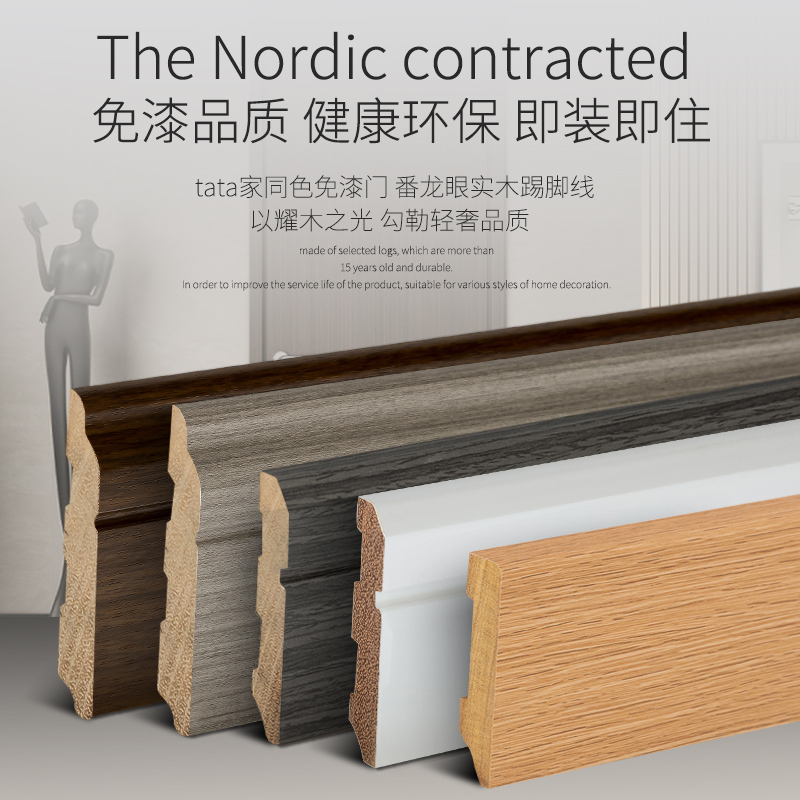 Longan pure solid wood skirting board log skirting board 4cm wooden floor stairs 8cm wood wood line living room