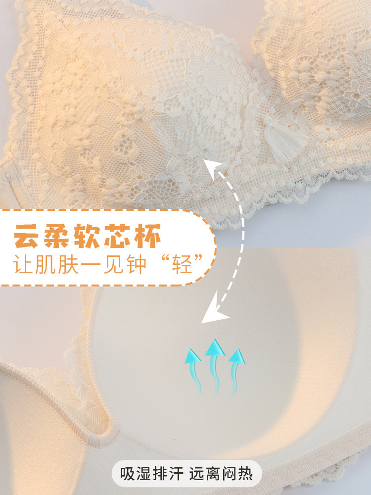 Adjusted underwear Female ultra-thin Bra large chest for small gathering to collect auxiliary milk Drooping Sexy Lace Little Cute Hood