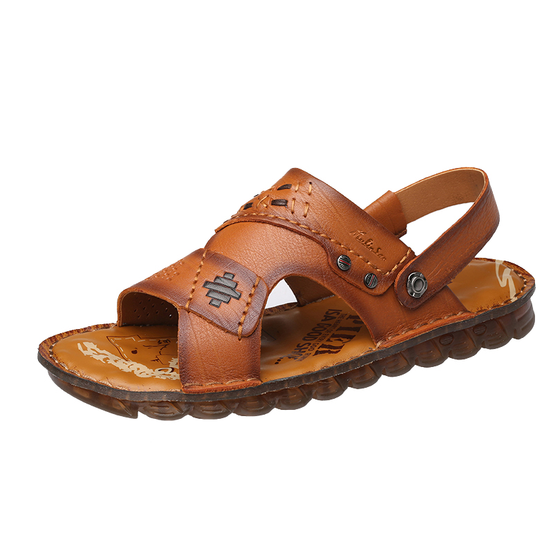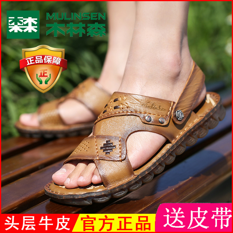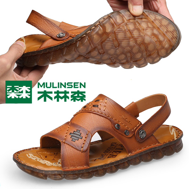 Mulinsen men's sandals leather leather soft bottom summer casual beach shoes men's sandals and slippers dual-use beef tendon bottom wear - Taobao