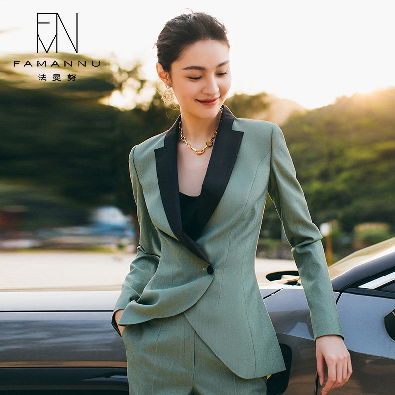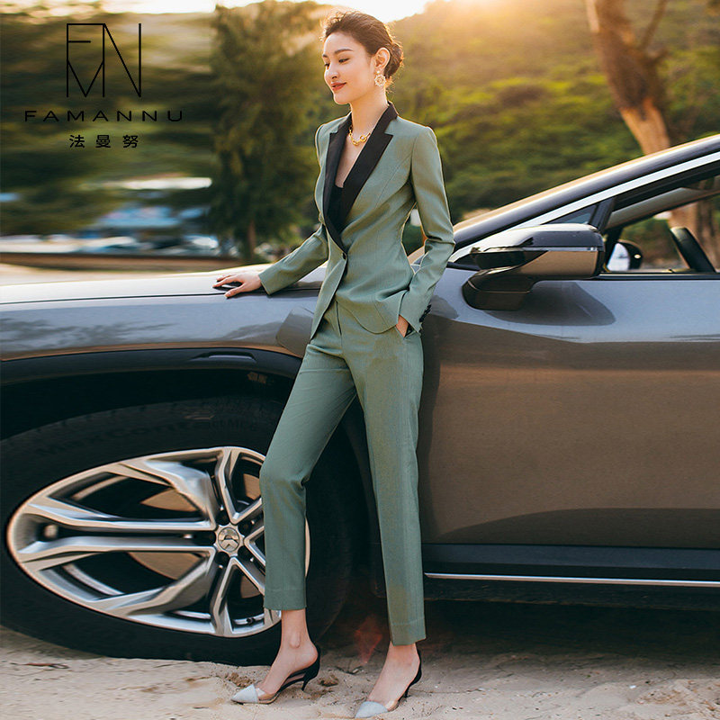 Temperament casual suit suit Goddess Fan High-end work clothes Spring and autumn style Fashion Splicing Collar Work Ol Work Clothes